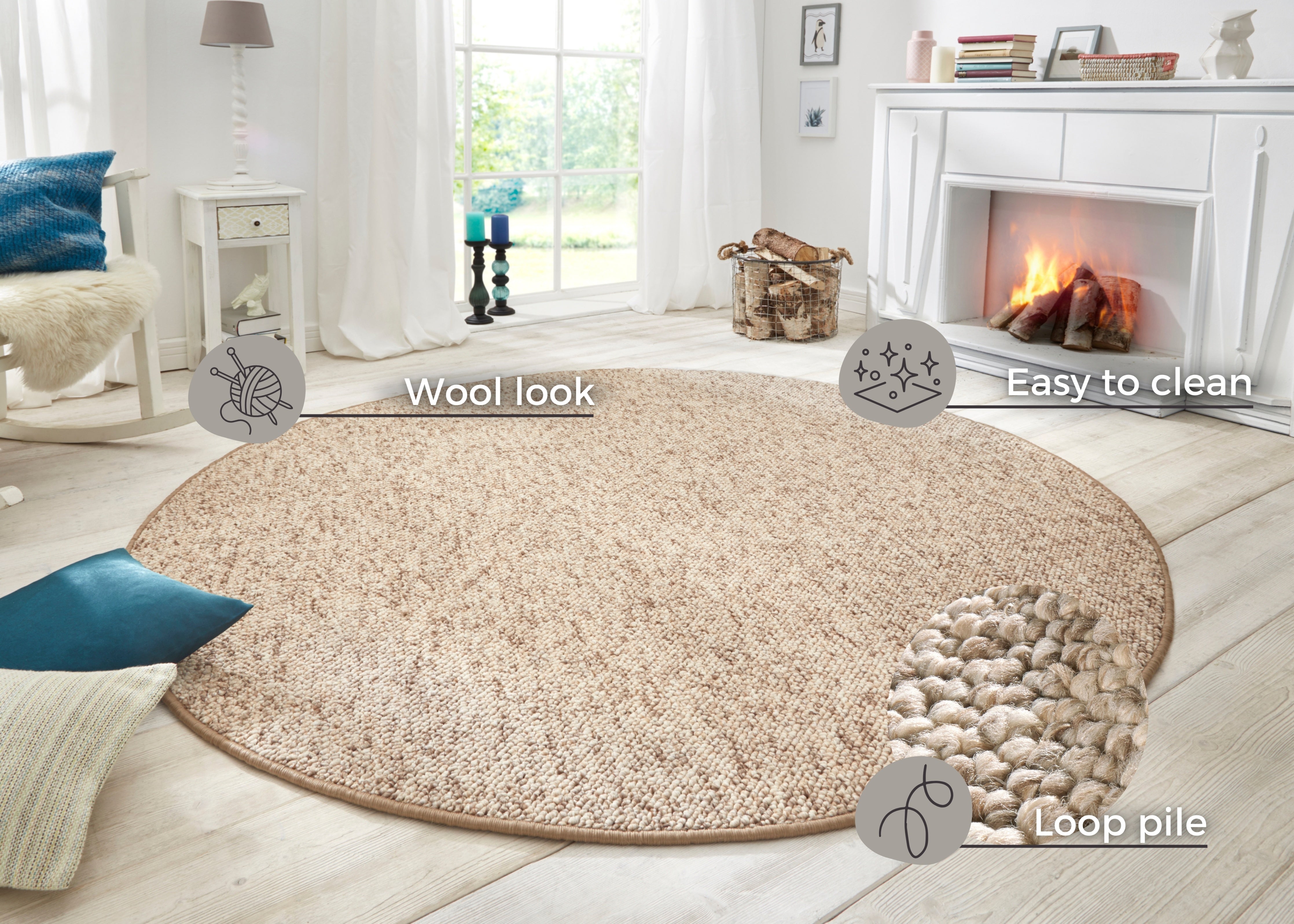 Wolly-tæppets enkle uld-design passer smukt ind i mange indretningsstile. Den høje kvalitet og de syntetiske fibre gør tæppet yderst slidstærkt og nemt at rengøre. Den bløde fleecebagside tilføjer ekstra komfort og beskytter dit gulv mod ridser. Tæppet er egnet til alle gulvtyper, inklusive gulvvarme, så du kan nyde dets blødhed og varme overalt i dit hjem.
