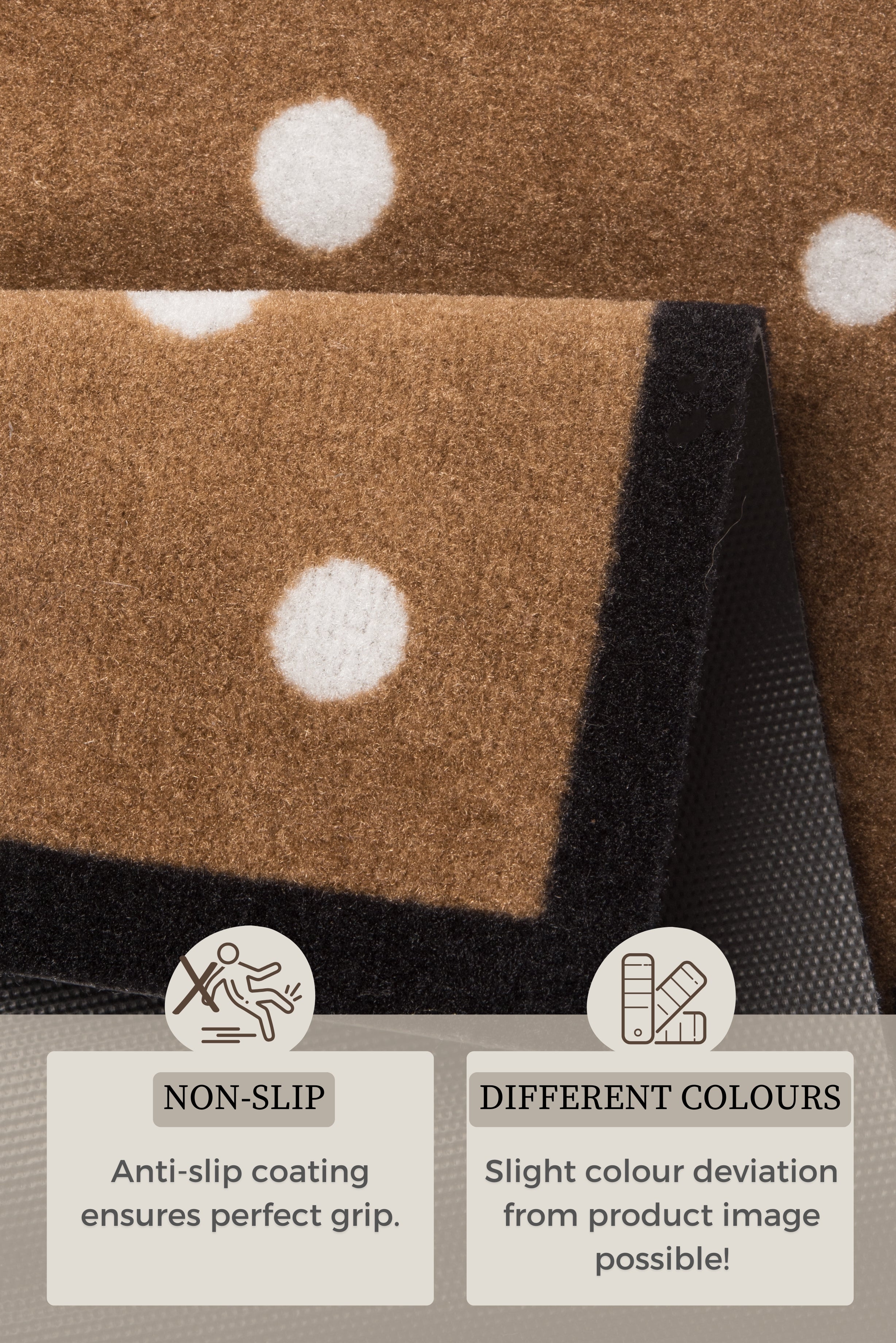 Med sin smukke brune farve passer "Printy" måtten perfekt ind i de fleste indretninger. Den lave luvhøjde på 0.7 mm giver en behagelig følelse under fødderne. Rengøring er en leg – blot håndvask ved 30°C. En praktisk og elegant løsning til ethvert hjem.