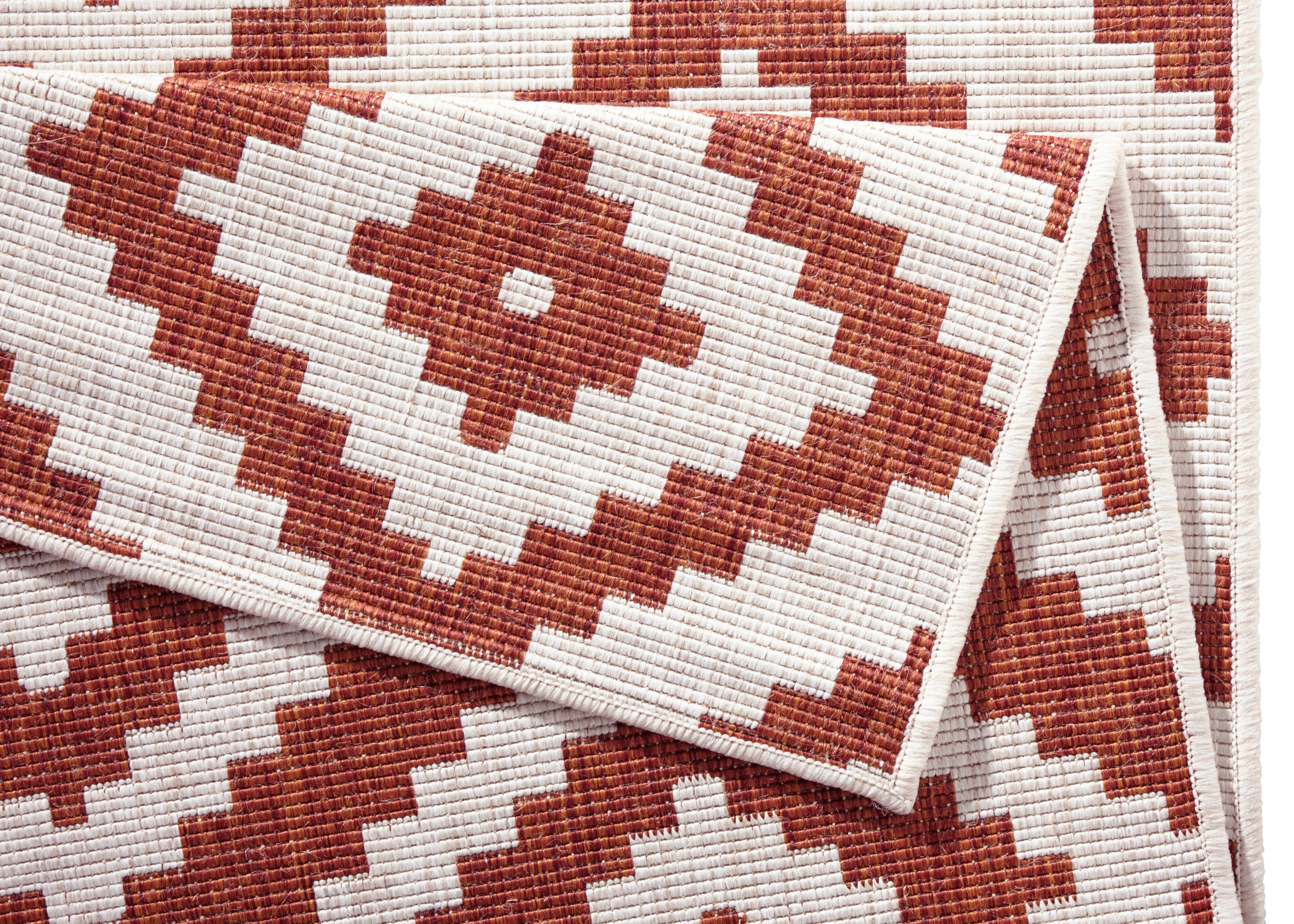Twin tæppets geometriske design er ikke kun et blikfang, men også utroligt praktisk. Det vendbare design giver dig to forskellige looks i ét tæppe, mens den robuste polypropylen-bagside sikrer stabilitet og forlænger tæppets levetid. Tæppet er velegnet til alle gulvtyper, inklusive gulvvarme, og dets slidstærke materiale gør det modstandsdygtigt over for vind og vejr. Spild er ingen katastrofe – du kan nemt fjerne pletter med en fugtig klud.