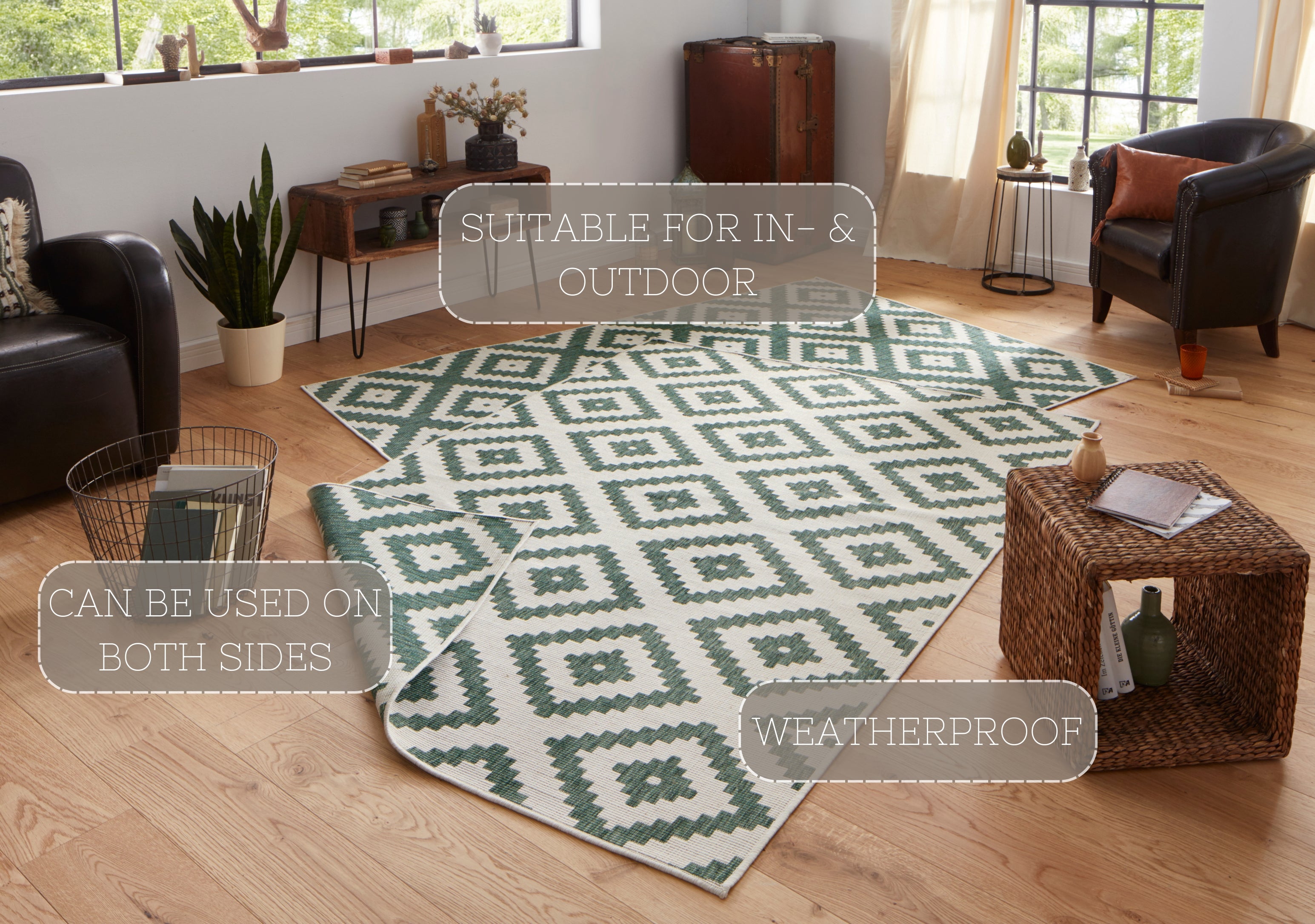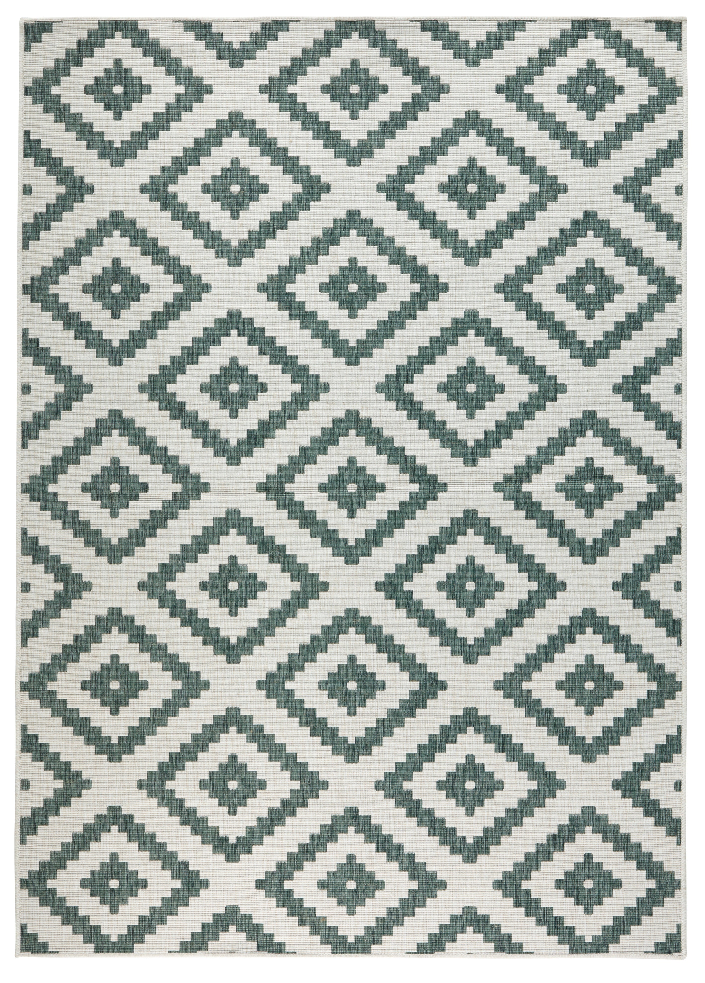 Forkæl dit hjem med det stilfulde og alsidige Twin - 103131 tæppe i en frisk grøn/creme farvekombination. Vævet i 100% slidstærkt polypropylen, tilføjer dette tæppe et strejf af moderne elegance til ethvert rum, både inde og ude.