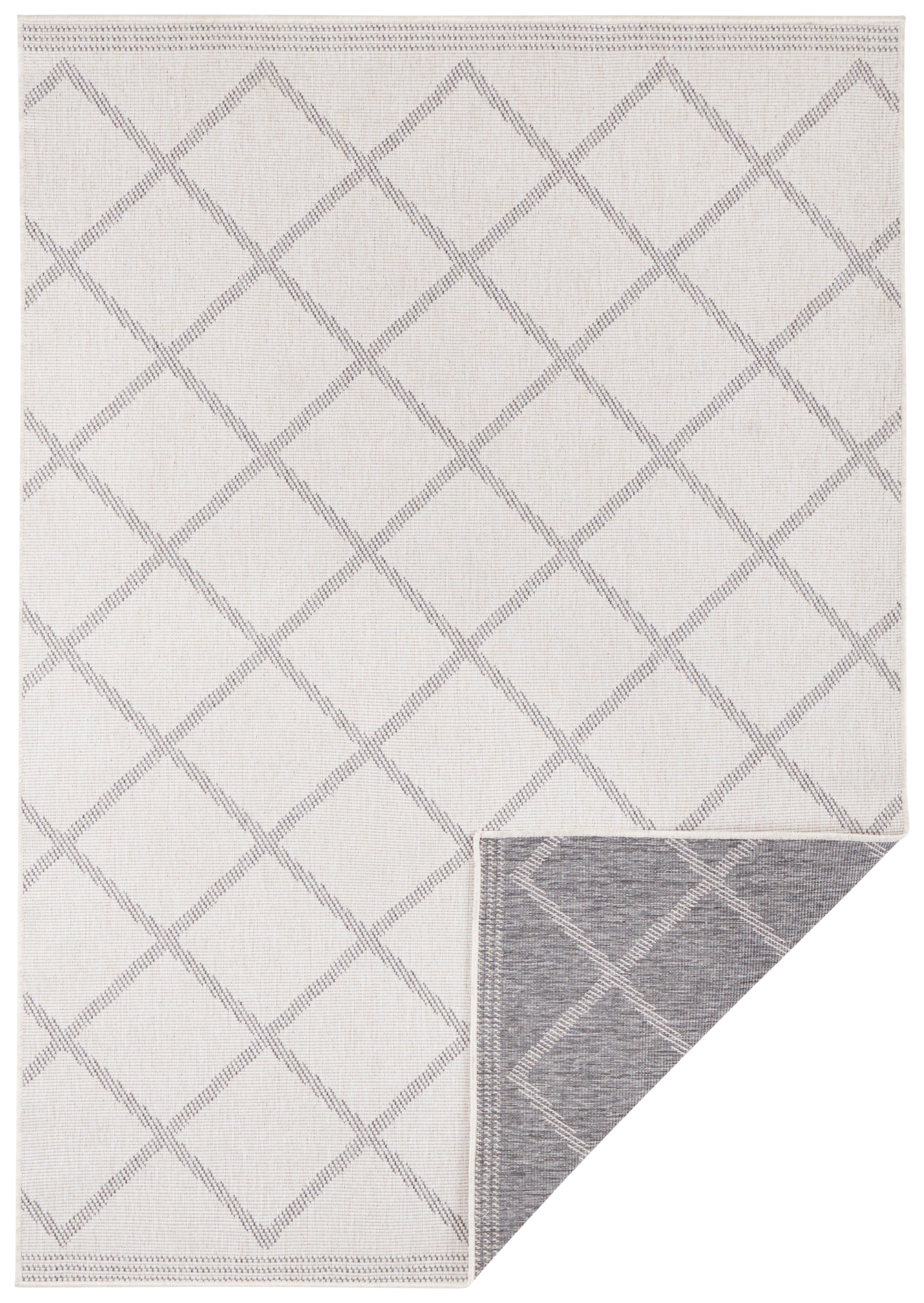 Twin Supreme - 103760 i grå/creme fra Hanse Home er et stilfuldt og praktisk tæppe i 100% polypropylen, der tilføjer et strejf af moderne elegance til ethvert rum. Det slidstærke materiale giver et robust og let tæppe, der passer perfekt både inde og ude.