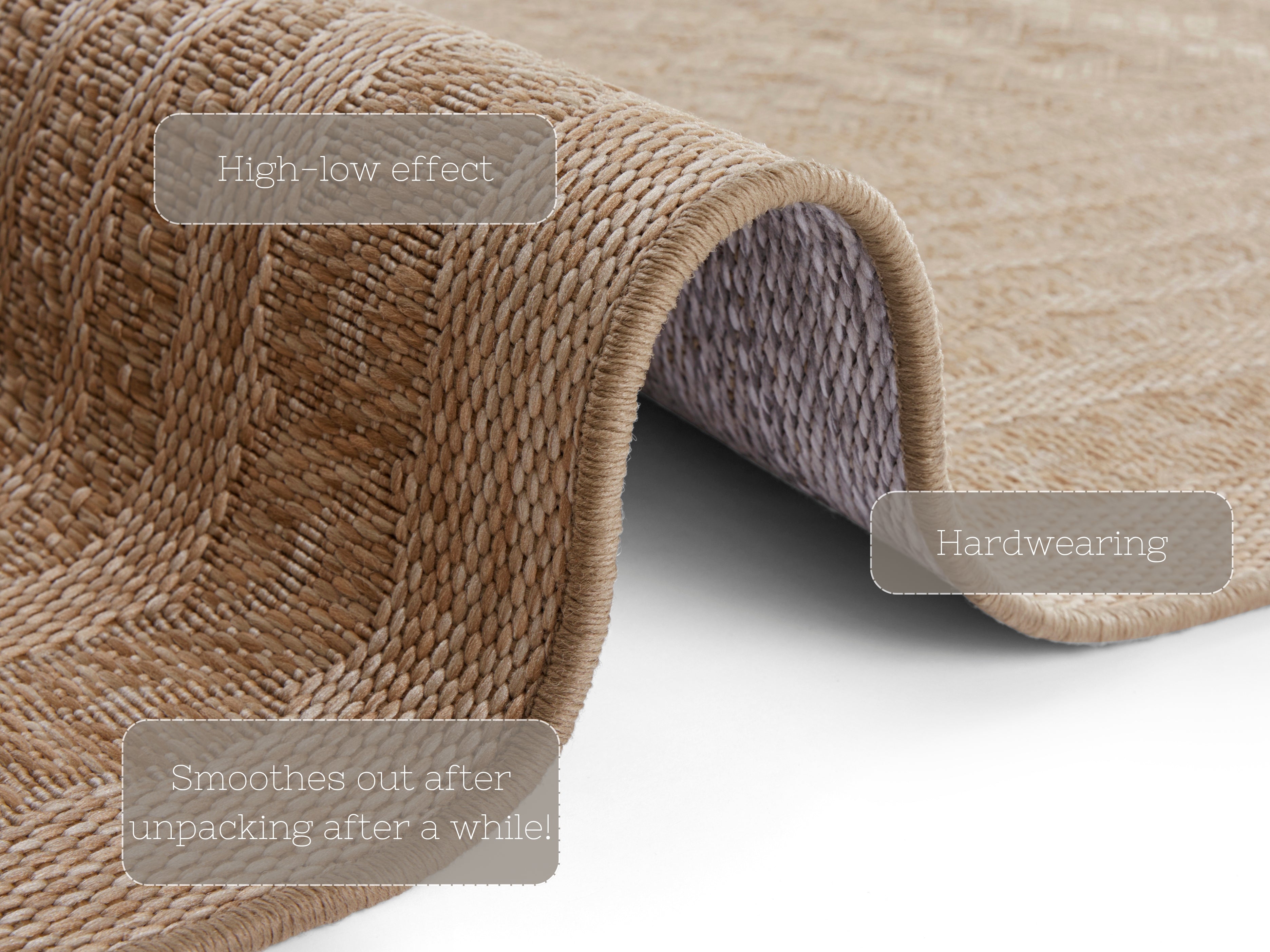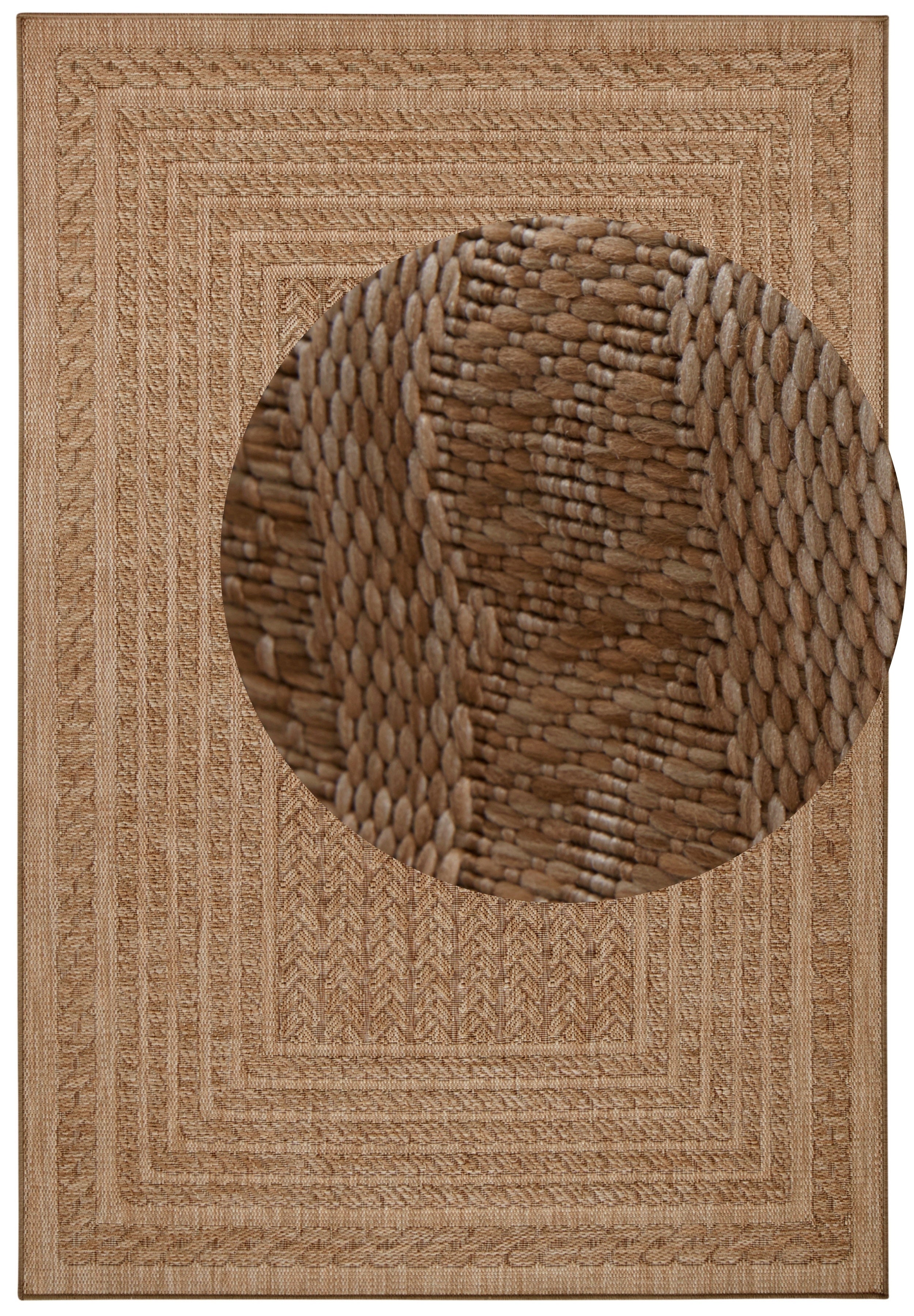 Forest-tæppet er en sand all-rounder, der er vejrbestandigt og derfor ideelt til både indendørs og udendørs brug. Det moderne sisal-look giver et elegant touch, mens den slidstærke polypropylen-bagside sikrer stabilitet og lang holdbarhed. Tæppet er nemt at rengøre og passer til alle gulvtyper, inklusive gulvvarme, hvilket gør det til et praktisk og alsidigt valg. Den robuste konstruktion i 100% polypropylen gør det modstandsdygtigt over for slid og snavs.