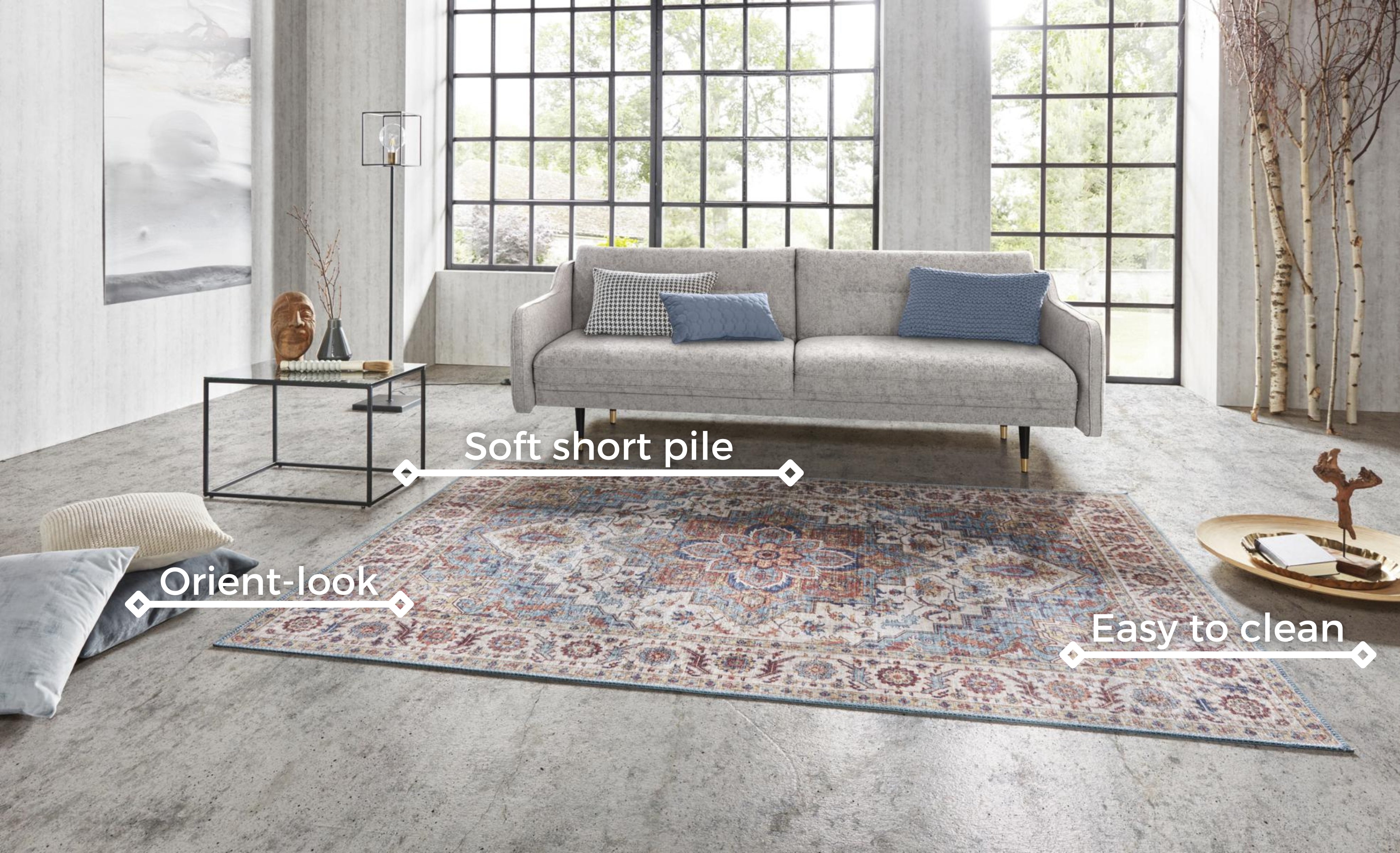 Asmar tæppet fra Hanse Home er ikke kun smukt, men også praktisk. Den bløde og letplejede fladvævning gør det ideelt til travle hjem. Bagsiden i bomuld giver tæppet en god stabilitet og forhindrer det i at glide, samtidig med at det føles behageligt under fødderne. Tæppet er egnet til alle gulvtyper, inklusive gulvvarme, så du kan nyde dets blødhed og varme året rundt. Den robuste konstruktion sikrer lang holdbarhed, så du kan glæde dig over dit Asmar tæppe i mange år.