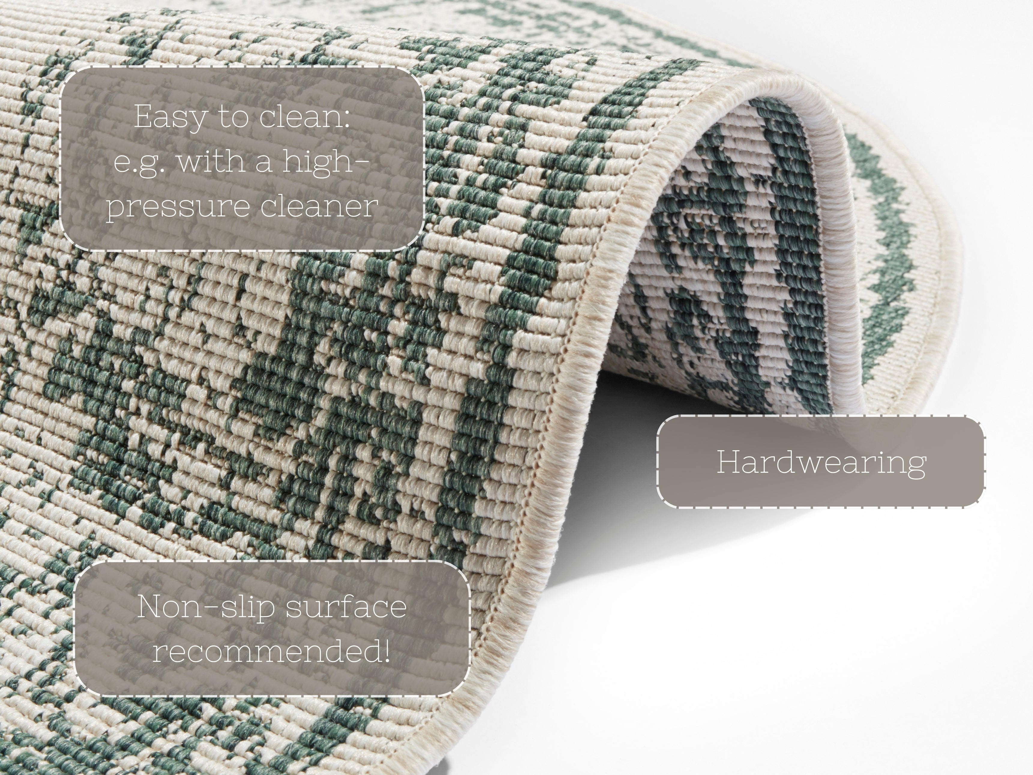 Forkæl dit hjem med det smukke og alsidige Twin Supreme tæppe i en frisk grøn/creme farvekombination. Vævet i 100% slidstærkt polypropylen, tilføjer dette tæppe et strejf af klassisk orientalsk elegance til ethvert rum, både inde og ude.