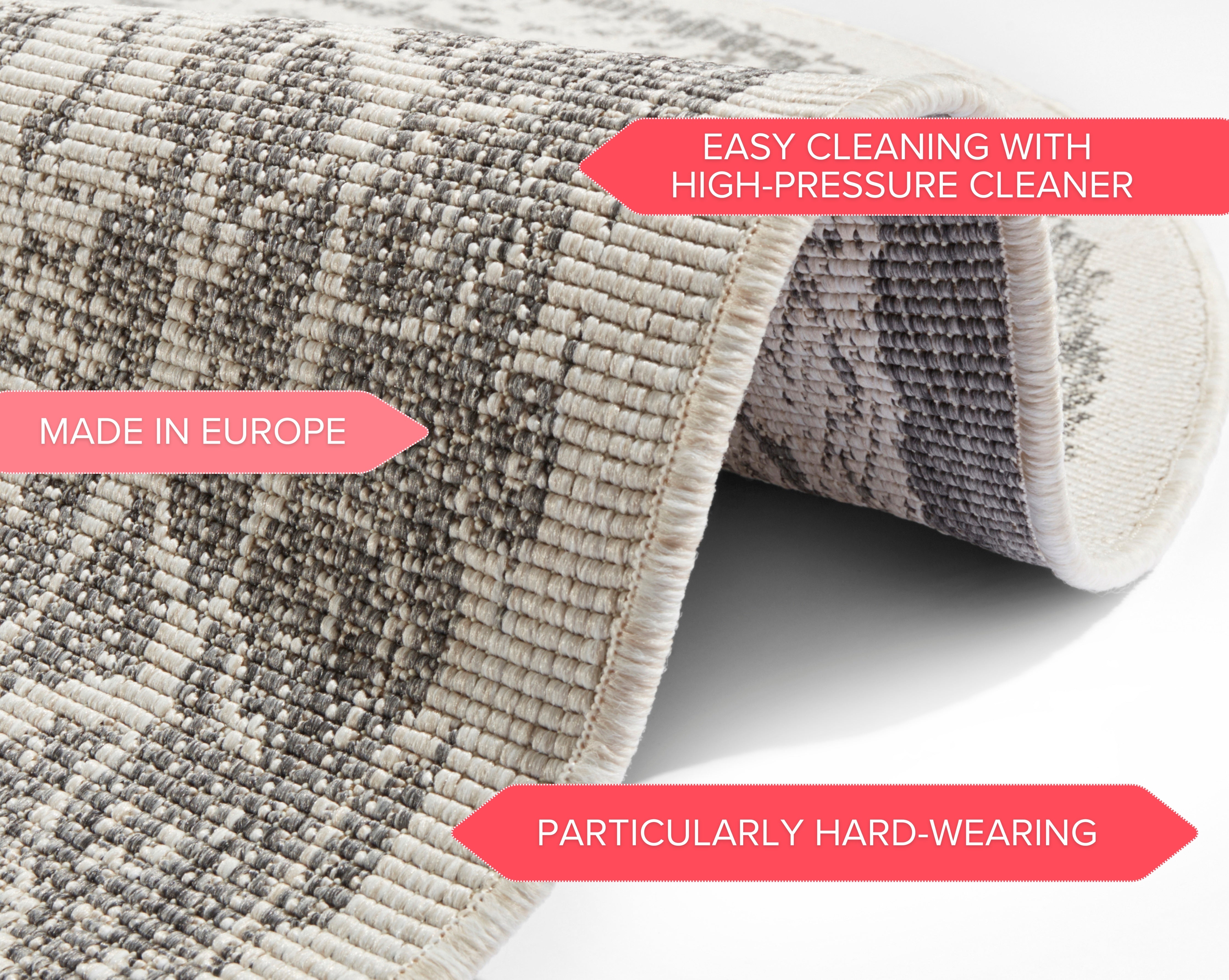 Nora tæppet er mere end bare smukt; det er designet til at holde. Den robuste polypropylen konstruktion gør det både slidstærkt og vejrbestandigt, perfekt til alt fra stuen til terrassen. Tæppet er fladvævet og egnet til gulvvarme, hvilket sikrer optimal komfort året rundt. Som en ekstra bonus er Nora tæppet vendbart, så du får to forskellige farvekombinationer i ét tæppe – dobbelt op på indretningsmulighederne! Designet i samarbejde med Elle Decoration, er dette tæppe et sandt multitalent.