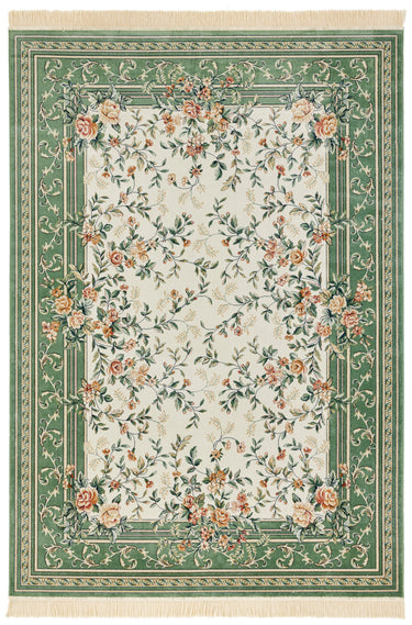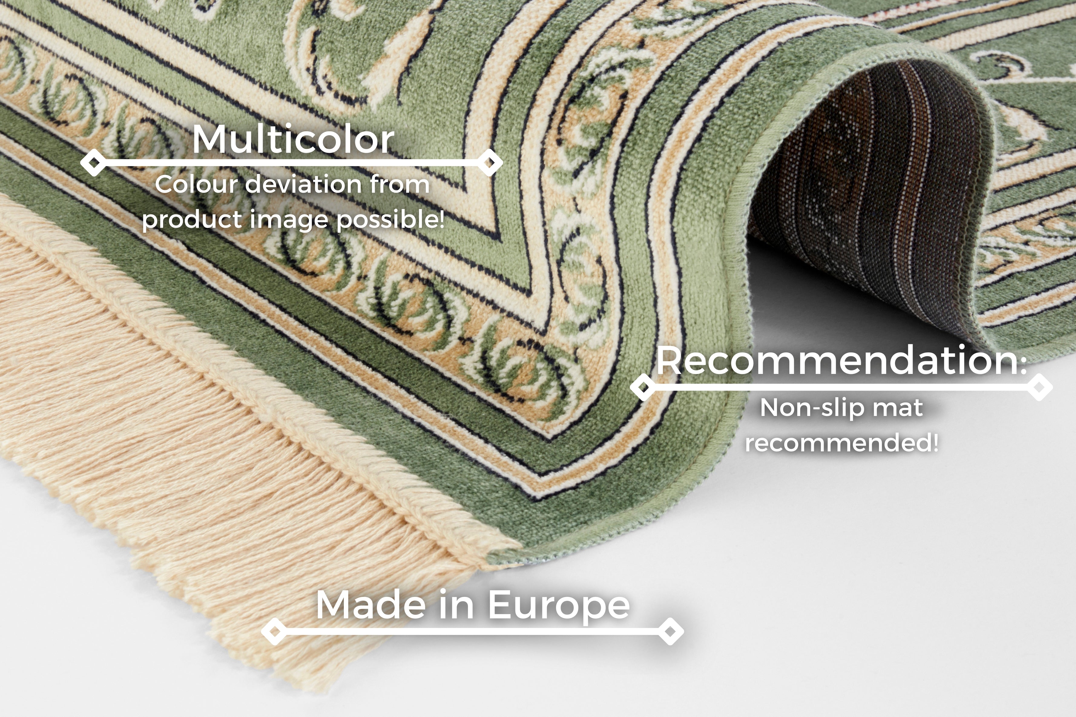 Forkæl dit hjem med den bløde elegance fra Naveh-tæppet (104369 Creme/Grøn) fra Hanse Home. Den udsøgte blanding af 60% viskose og 40% bomuld skaber en behagelig overflade, der indbyder til afslapning og tilføjer et strejf af luksus til ethvert rum. Det klassiske, orientalsk inspirerede blomstermønster i creme og grønne nuancer giver tæppet en tidløs charme, der vil pryde din stue, soveværelse eller spisestue.