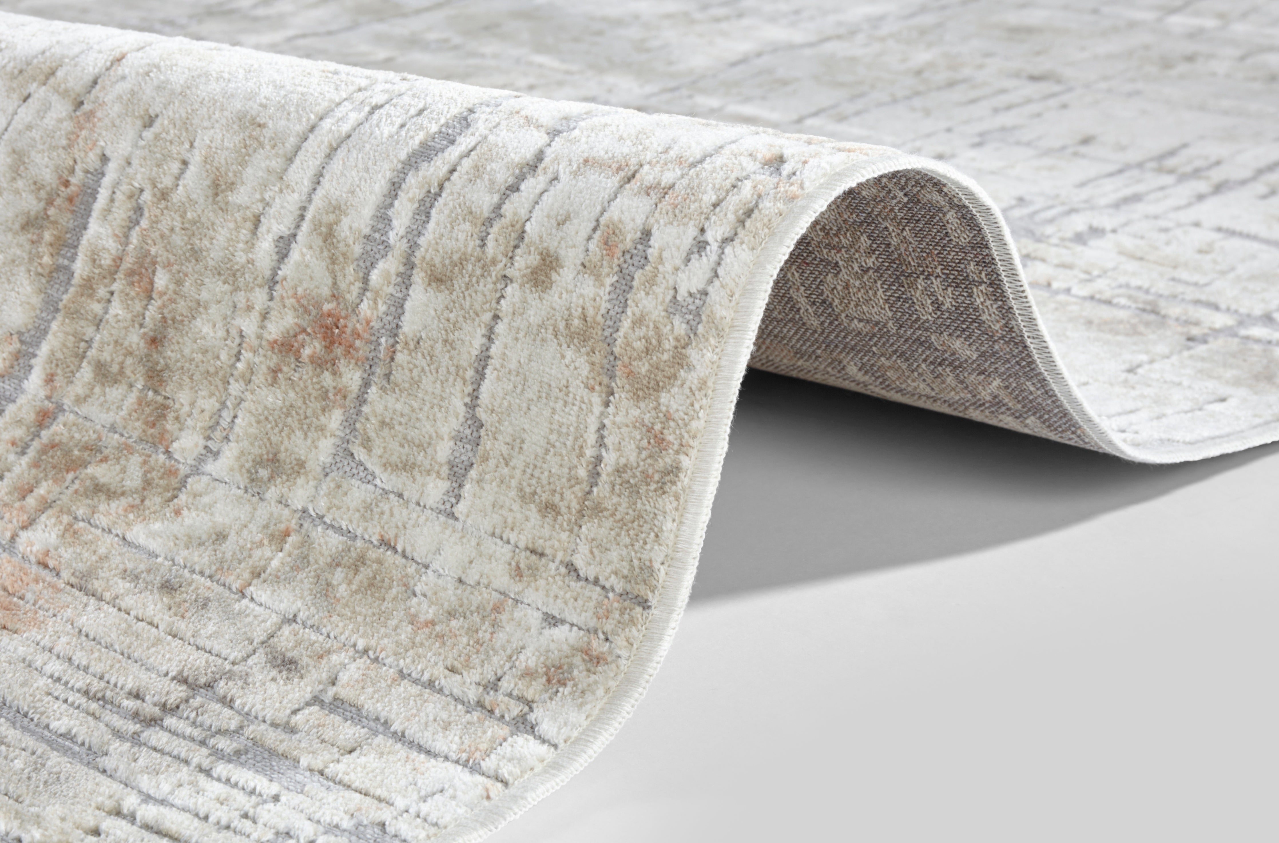 Maywand-tæppet prydes af et klassisk marmor-look, der nemt integreres i din eksisterende indretning. Den subtile farvekombination og det enkle design komplementerer enhver stilfuld indretning. Bagsiden, fremstillet af slidstærk jute og viskose, giver tæppet stabilitet og forhindrer det i at glide. Den robuste overlock-kantafslutning på alle sider sikrer lang holdbarhed og et flot finish. Tæppet er desuden slidstærkt og nemt at rengøre, hvilket gør det perfekt til travle hverdage.