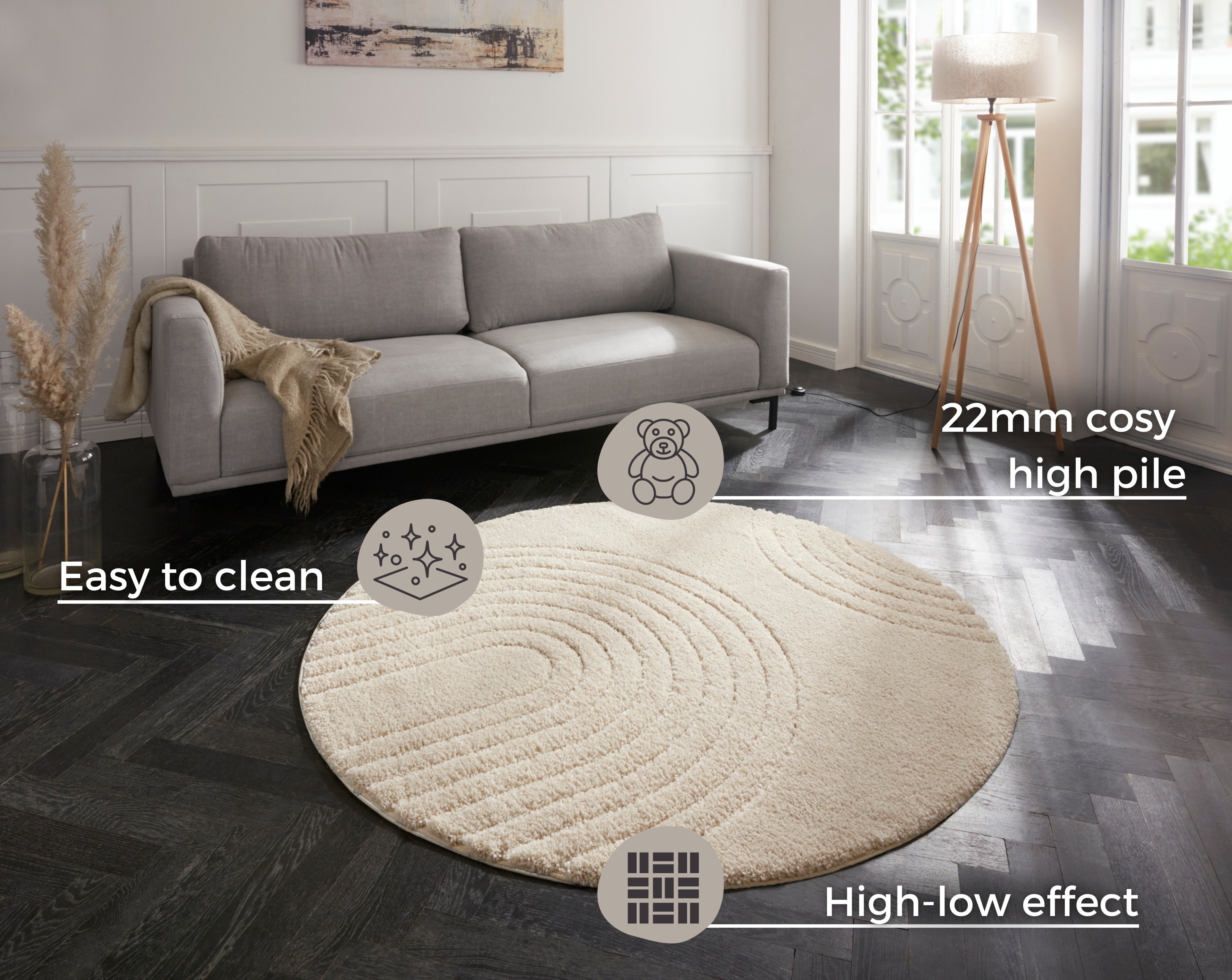 Forkæl dine fødder med den bløde og behagelige Norwalk - 105104 Creme tæppe i en smuk, rund form. Fremstillet af 100% polypropylen, skaber dette tæppe en varm og indbydende atmosfære i ethvert rum. Den cremefarvede nuance tilføjer et strejf af elegance og lysner rummet op.