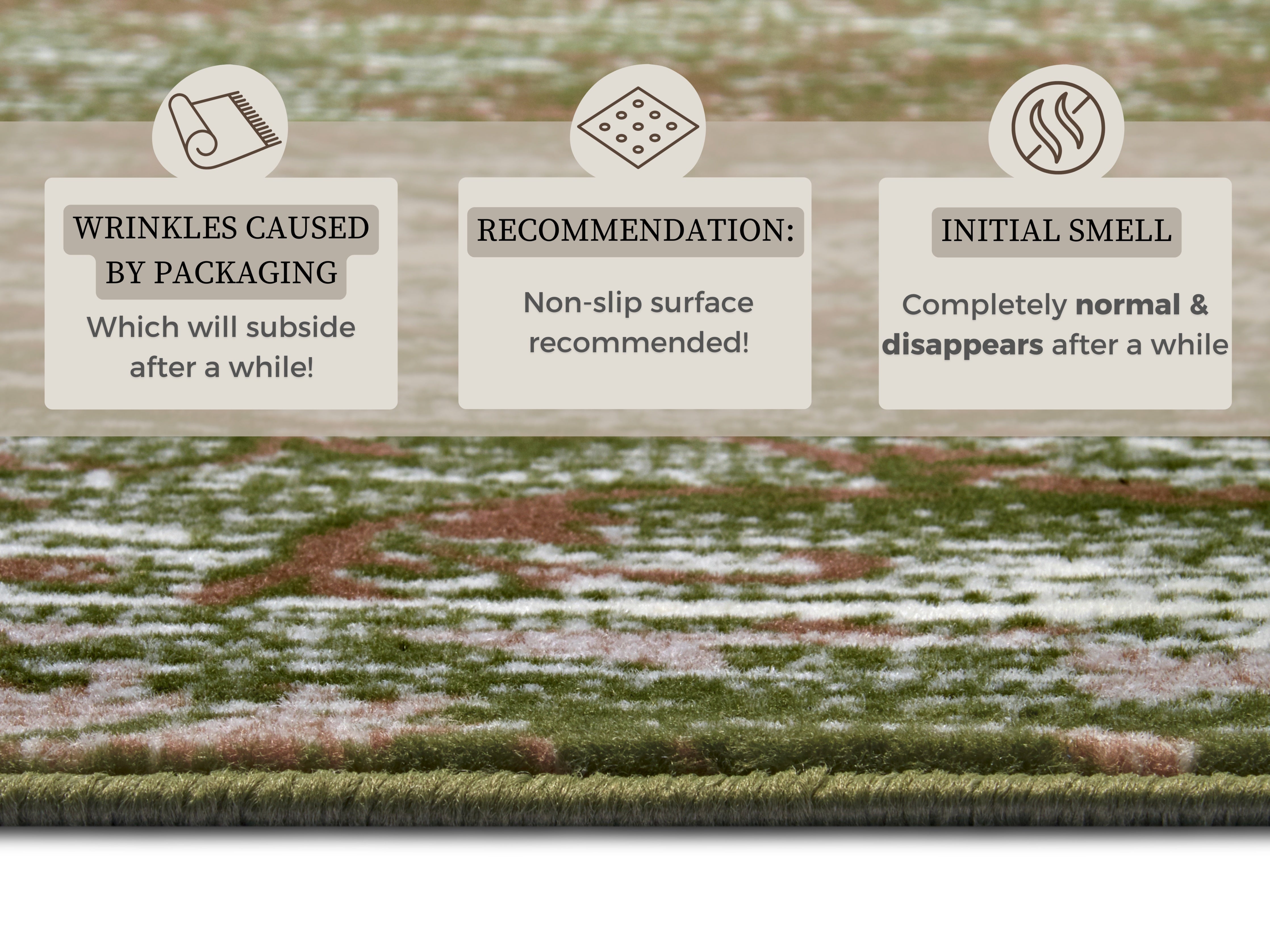 Gloria tæppets moderne stribedesign passer perfekt til alle gulvtyper, inklusive gulvvarme. Den robuste jutebagside giver tæppet stabilitet og forhindrer det i at glide. Den farvematchede overlock-kantning på alle sider fuldender det elegante look og sikrer lang holdbarhed. Tæppets syntetiske fibre gør det utrolig slidstærkt og nemt at rengøre, så du kan nyde dets skønhed i mange år.