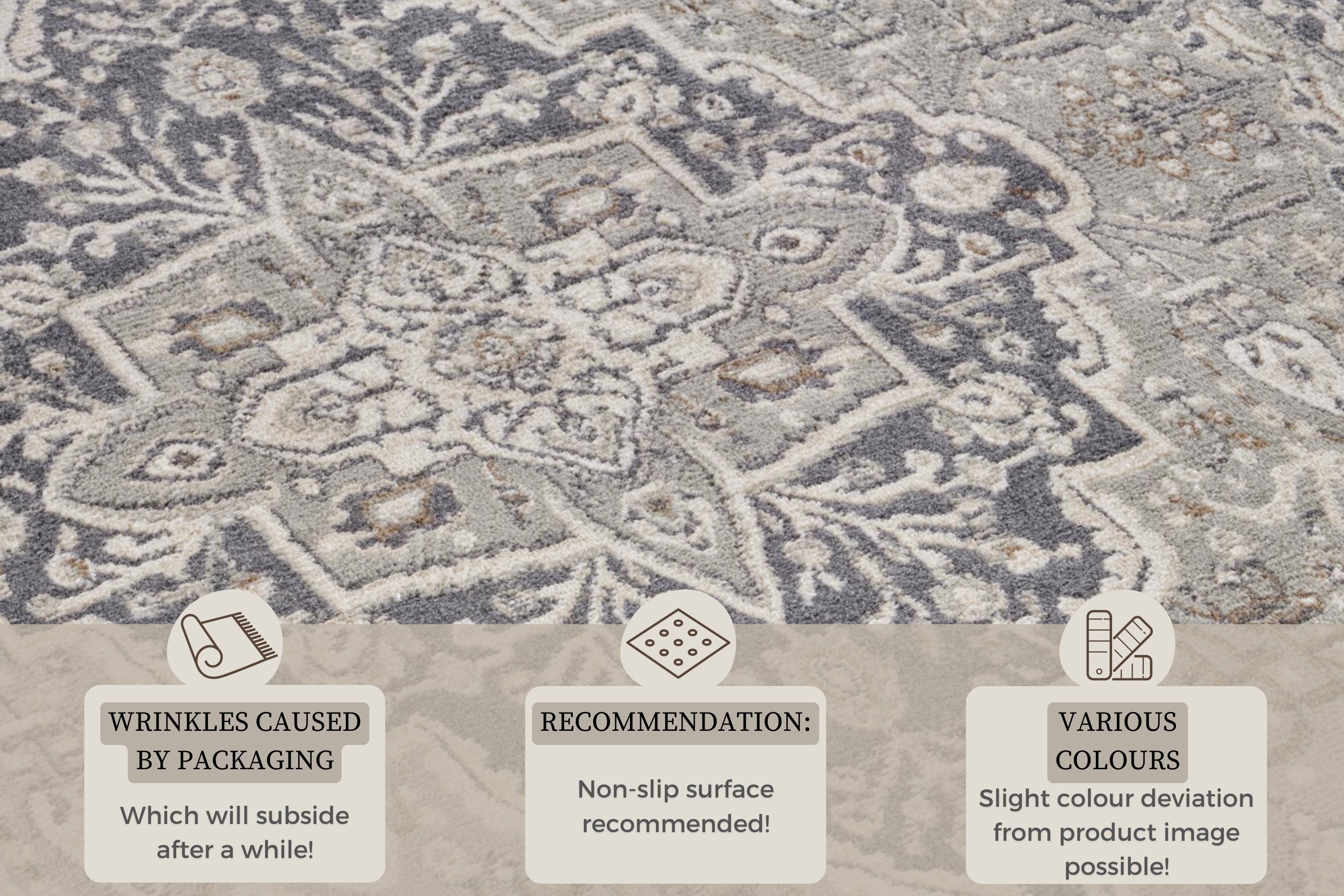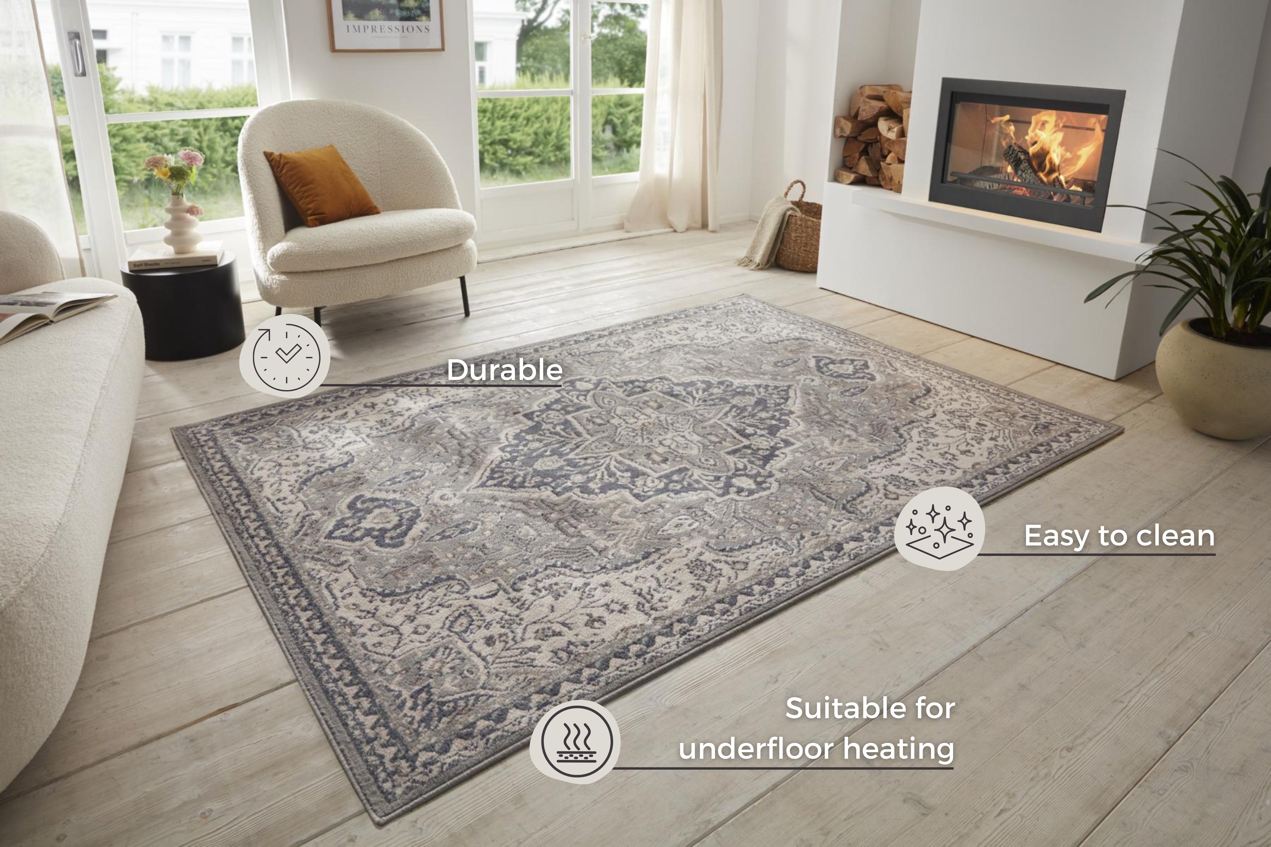 Giv dit hjem et strejf af klassisk elegance med dette smukke Terrain-tæppe i en sofistikeret grå farve. Det orientalske design og de afdæmpede nuancer gør det nemt at integrere i enhver indretningsstil, uanset om dit hjem er moderne eller traditionelt. Det er den perfekte løsning til at skabe en harmonisk og indbydende atmosfære i dit foretrukne opholdsrum.