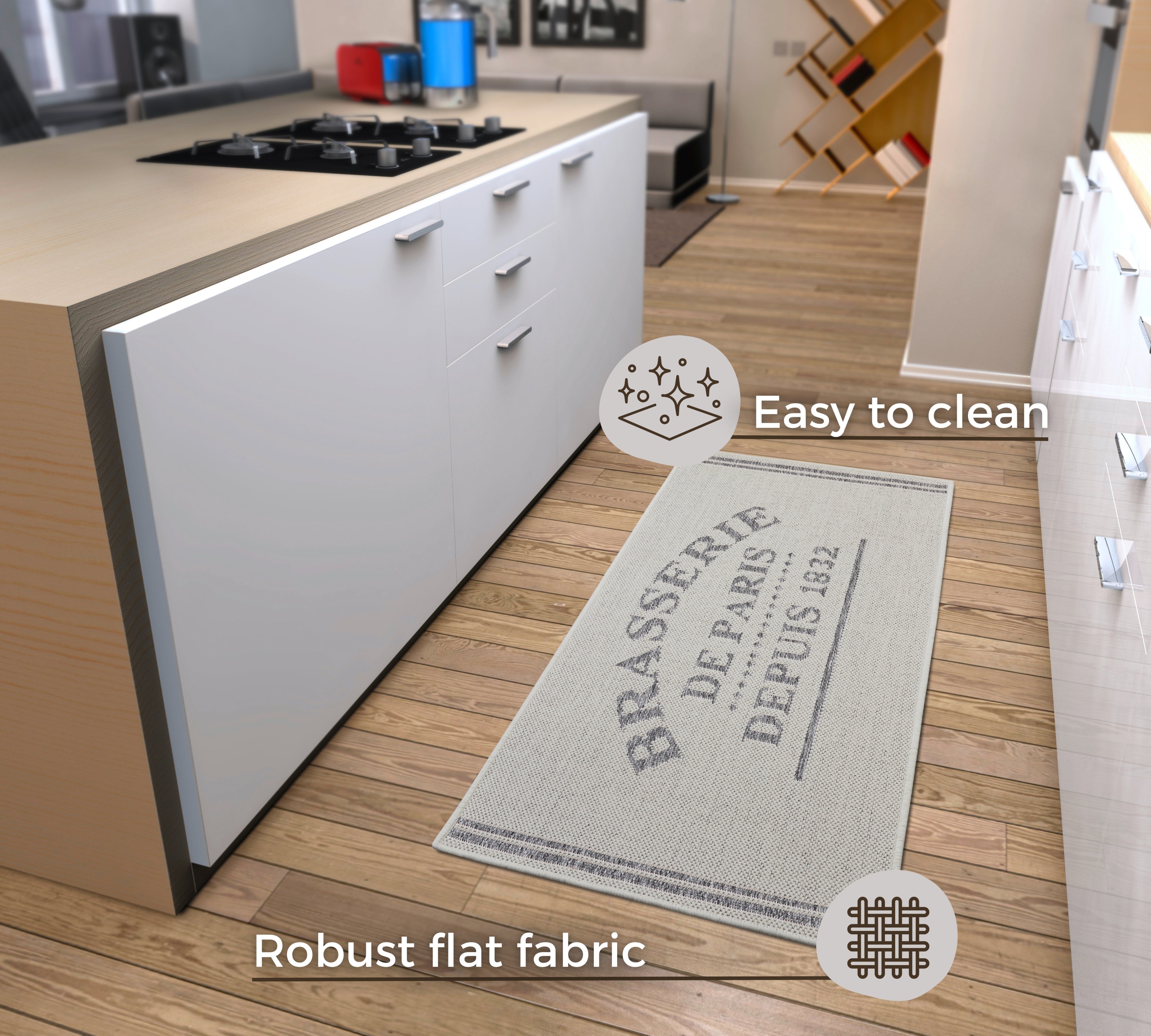 Giv dit køkken et stilfuldt løft med "Cucina - 105625 Creme/Grå" fra Hanse Home. Dette elegante tæppe i 100% polypropylen tilføjer en moderne touch og skaber en indbydende atmosfære i hjertet af dit hjem.