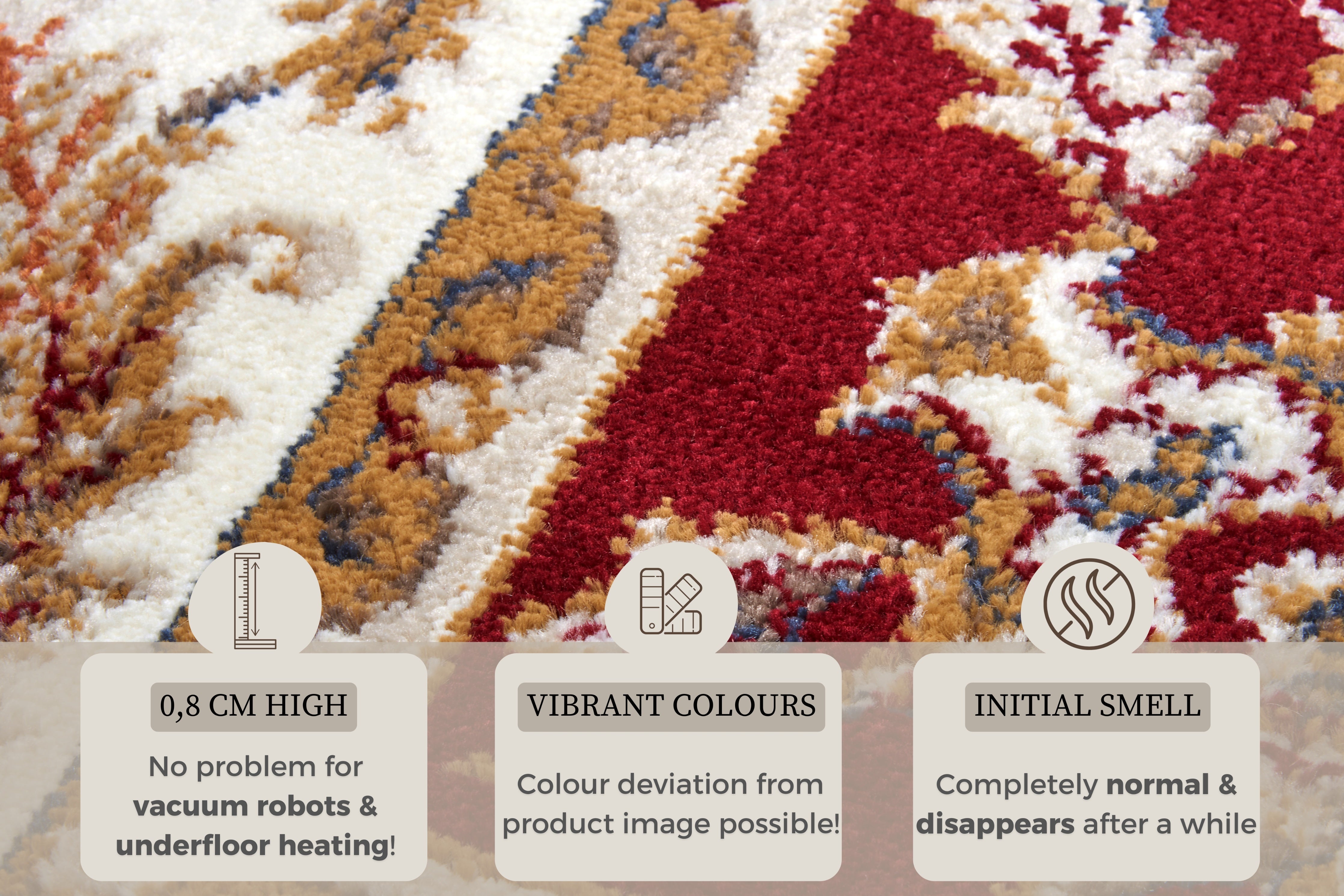 Forkæl dit hjem med den tidløse elegance fra Luxor-tæppet (105642 Rød/Creme) fra Hanse Home. Det smukke orientalske design i den klassiske rød/creme farvekombination, vævet i 100% slidstærkt polypropylen, skaber en varm og indbydende atmosfære i ethvert rum.