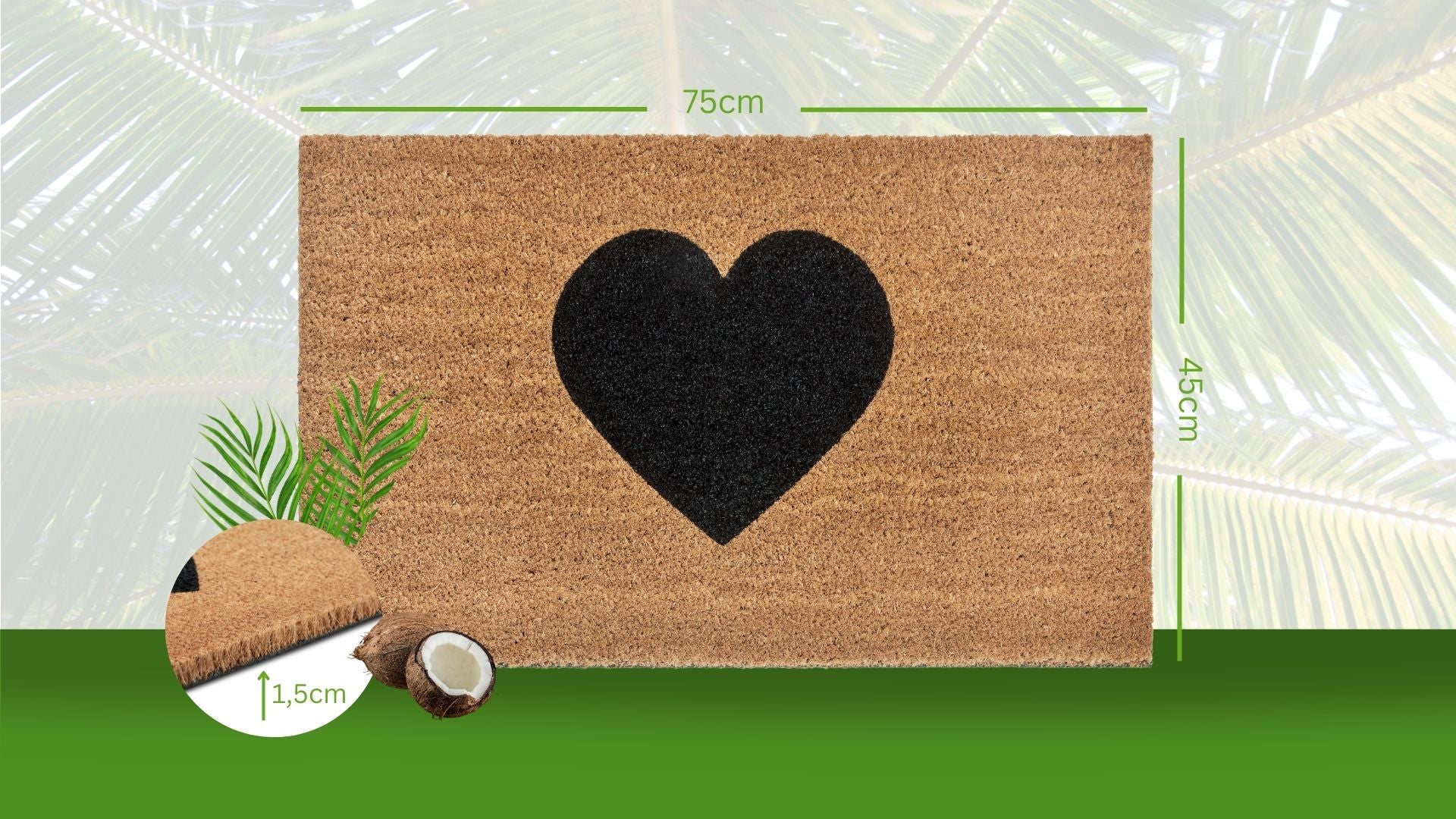 Med en luvhøjde på 1.5 mm føles måtten behagelig under fødderne. For at holde måtten ren og pæn anbefales rengøring med tæpperens. Nyd den naturlige skønhed og praktiske funktionalitet i din hverdag med denne smukke kokosmåtte.