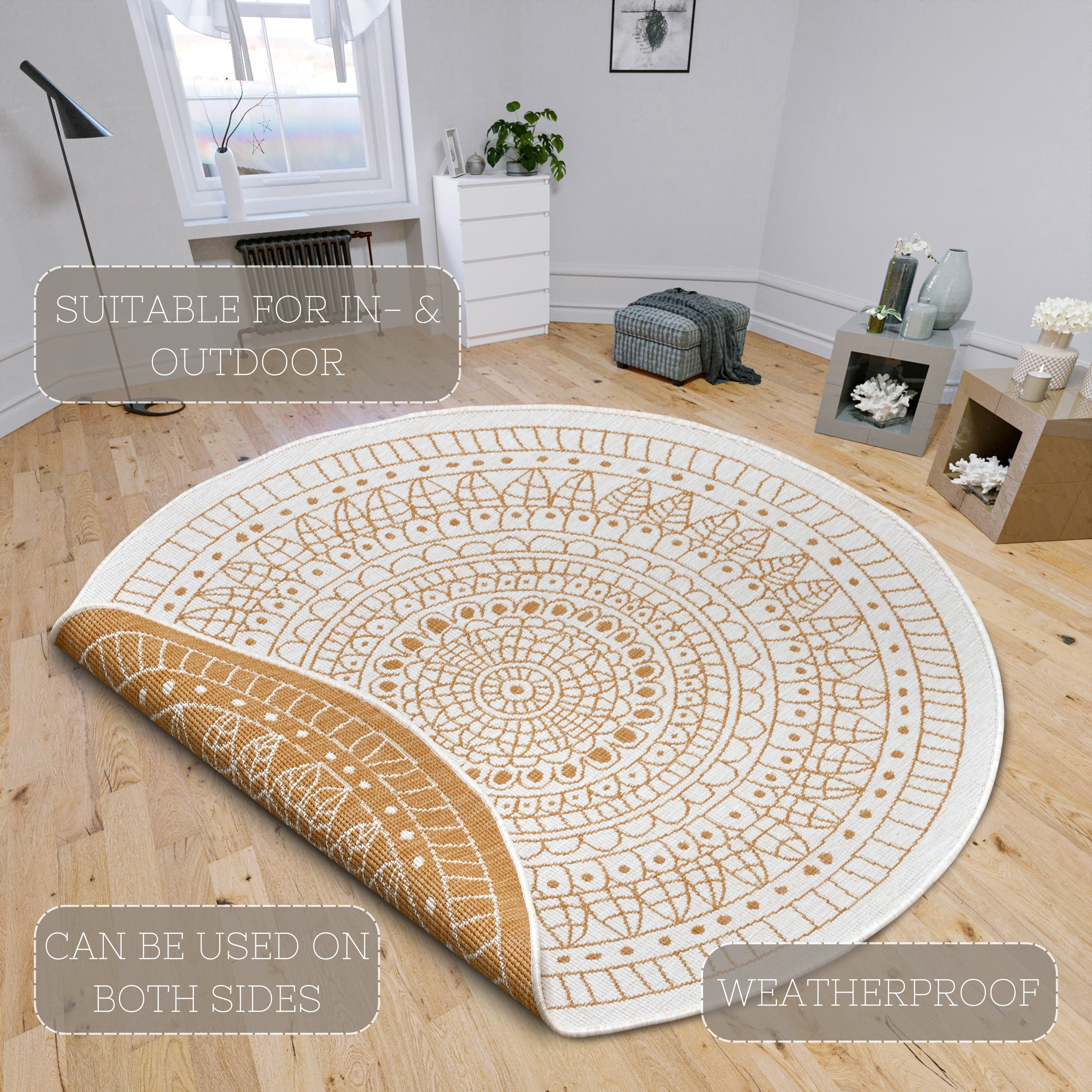 Inde&Udendørs Tæppe - Twin - Wendeteppiche - 105797 Okker - Rundt