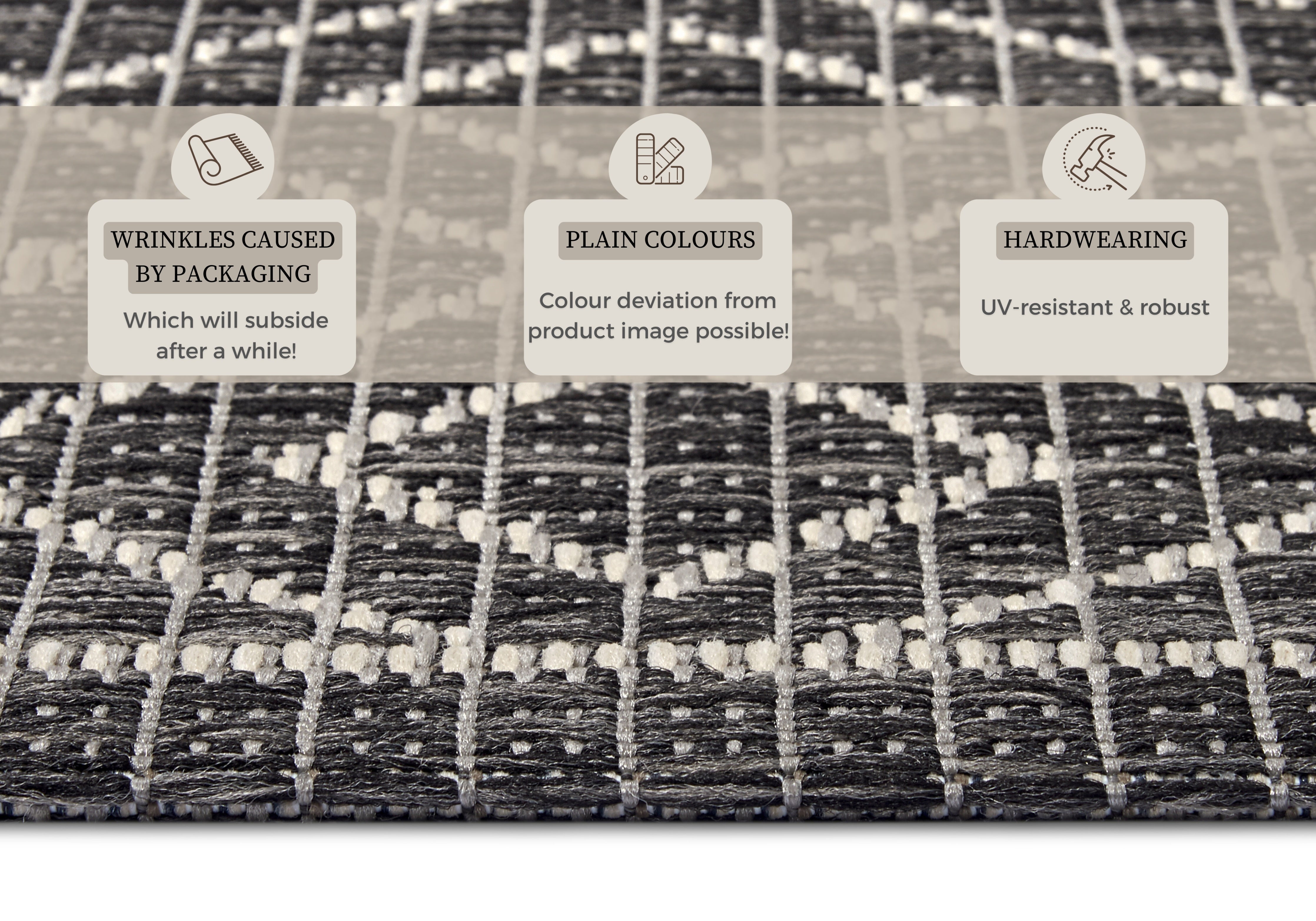 Clyde-tæppets fladvævede struktur gør det utroligt robust og ideelt til udendørs brug. Den slidstærke polypropylen er modstandsdygtig overfor både solens UV-stråler og varierende vejrforhold, så du kan nyde tæppet sæson efter sæson. Den praktiske latexbagside sikrer et godt greb på underlaget og forhindrer, at tæppet glider. Tæppets alsidighed gør det også velegnet til indendørs brug, hvor det kan tilføje et strejf af naturlig elegance til ethvert rum.