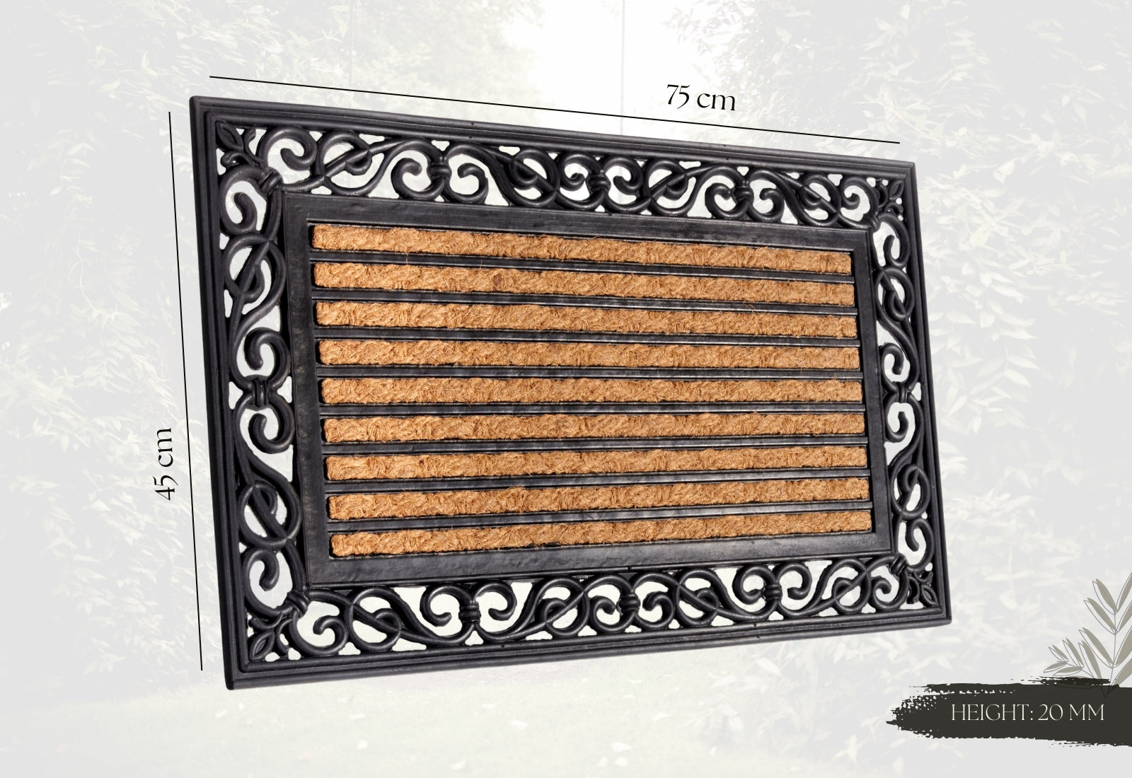 Kokos Måtte - Mix Mats er ikke kun smuk, men også utrolig praktisk. Den skridsikre bagside i 100% gummi holder måtten sikkert på plads og forhindrer uheld. De robuste kokosfibre er naturligt antibakterielle, da de ikke giver næring til bakterier, hvilket betyder at snavs og bakterier bliver på måtten og ikke slæbes med ind i huset. Måtten er velegnet til både indendørs og beskyttet udendørs brug, og dens slidstærke konstruktion sikrer lang tids holdbarhed.