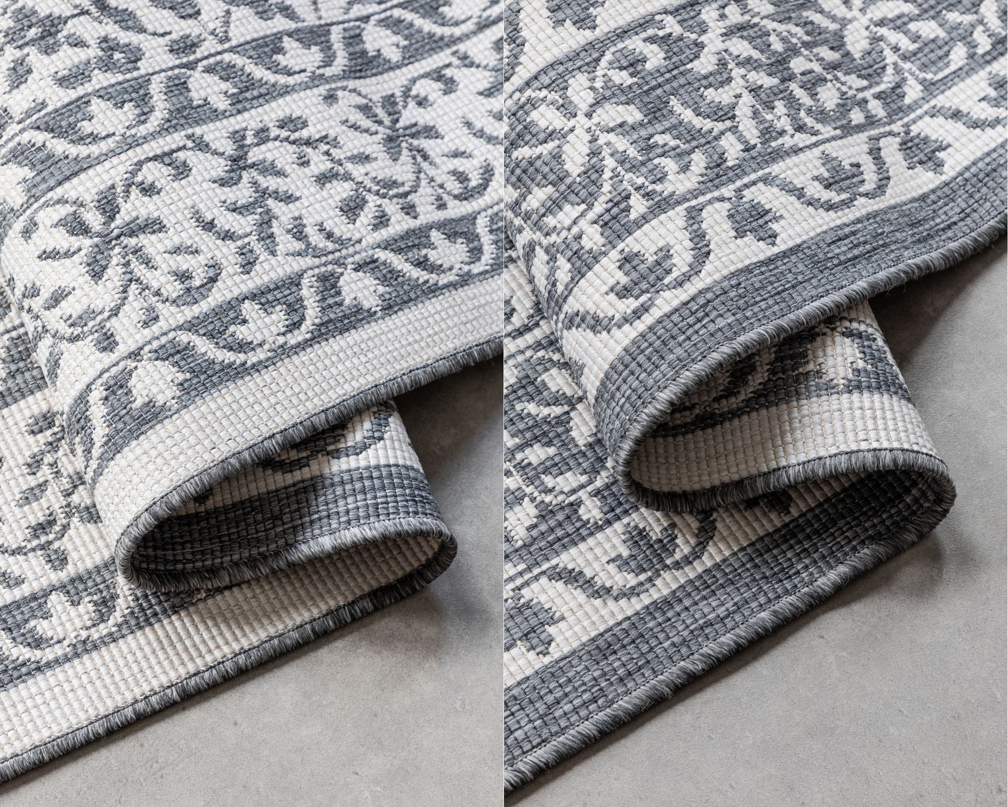 Gemini tæppet er en sand multikunstner. Det er lige så velegnet til at skabe hygge i stuen som til at pifte din terrasse eller altan op. Den fladvævede konstruktion gør det robust, smudsafvisende og vejrbestandigt, perfekt til udendørs brug. Tæppet er desuden vendbart, så du får to forskellige farvenuancer i ét tæppe, hvilket giver dig ekstra fleksibilitet i din indretning. Det er også egnet til gulvvarme, så du kan nyde komforten året rundt. Den slidstærke polypropylen bagside sikrer stabilitet og forlænger tæppets levetid.