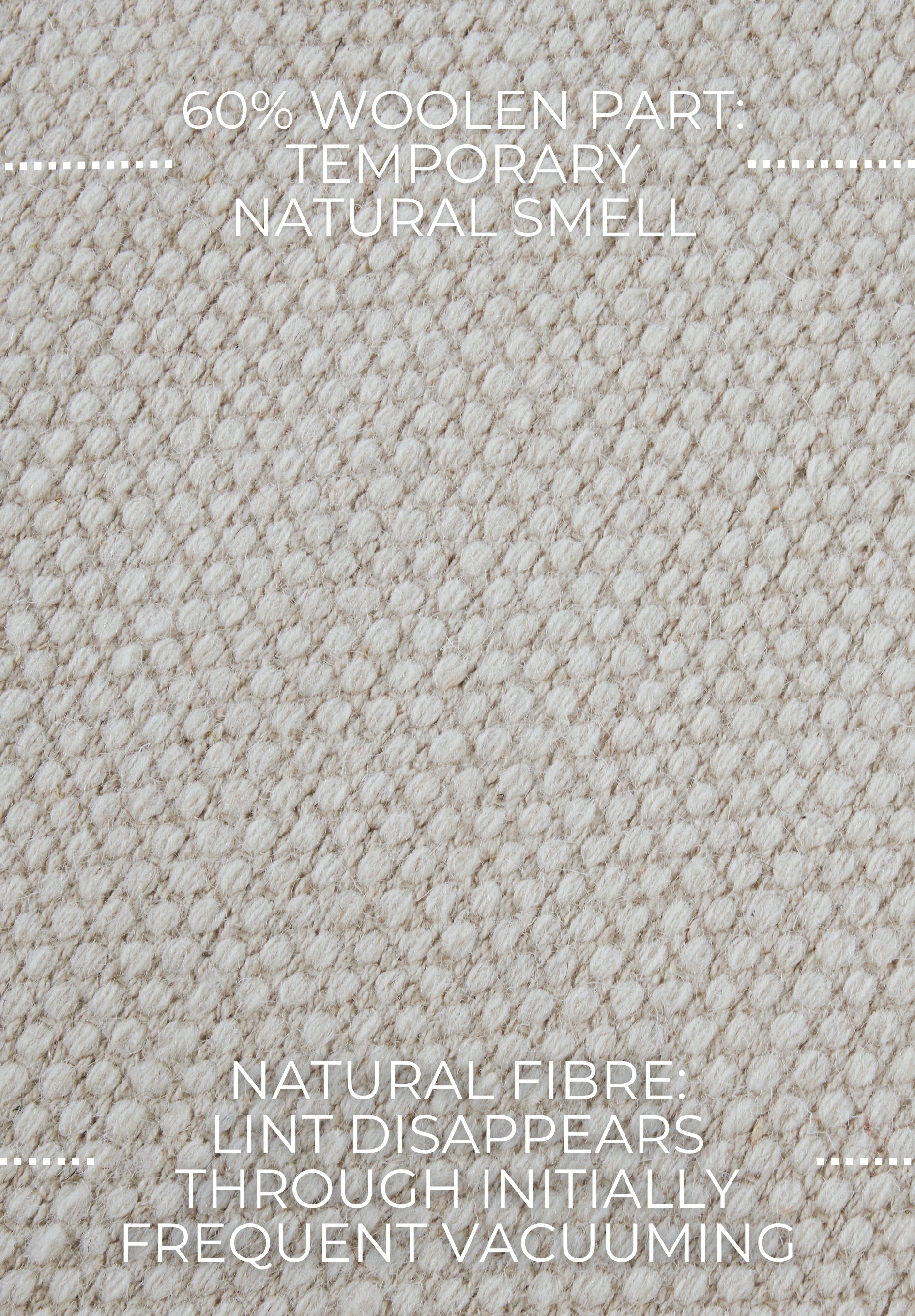 Delhi tæppet er ikke bare smukt, det er også utroligt alsidigt. Det kan vendes og bruges på begge sider, hvilket giver dig dobbelt så mange indretningsmuligheder. Den naturlige uld- og bomuldsblanding sikrer en behagelig blødhed under fødderne, mens den solide konstruktion, bestående af samme materiale på både for- og bagside (60% uld, 40% bomuld), garanterer langvarig holdbarhed. Tæppet er Care&Fair-certificeret, hvilket er din garanti for etisk produktion. Da tæppet er håndvævet af naturlige materialer, er hvert eksemplar unikt i sin farvesammensætning – små variationer i farven fra billederne skal derfor tages i betragtning.
