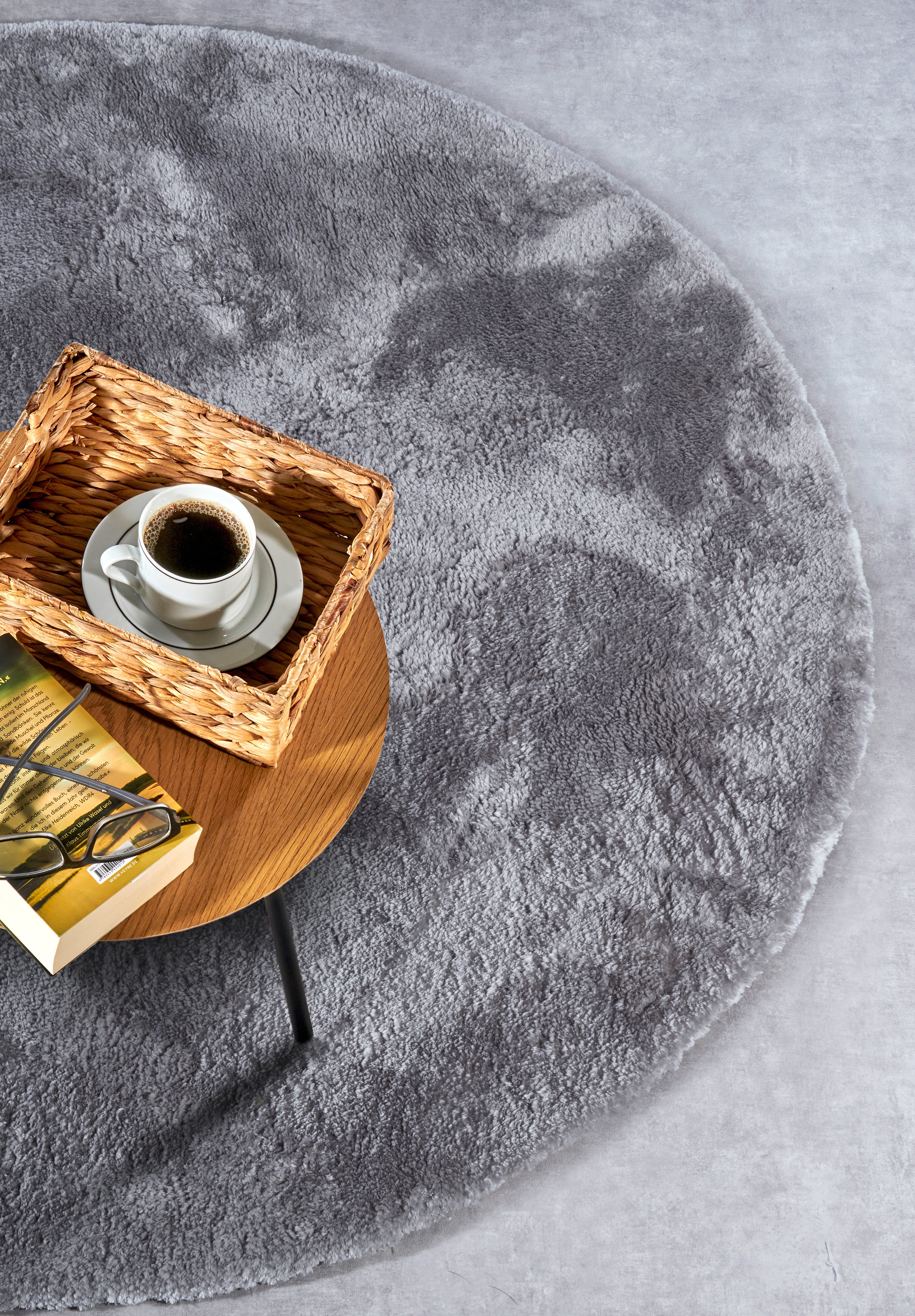 Forkæl dine fødder med den bløde luksus fra Elle Decoration's Cosy kollektion. Dette runde tæppe i en elegant sølvfarve er fremstillet af 100% polyester, der giver en behagelig og indbydende fornemmelse i ethvert rum.
