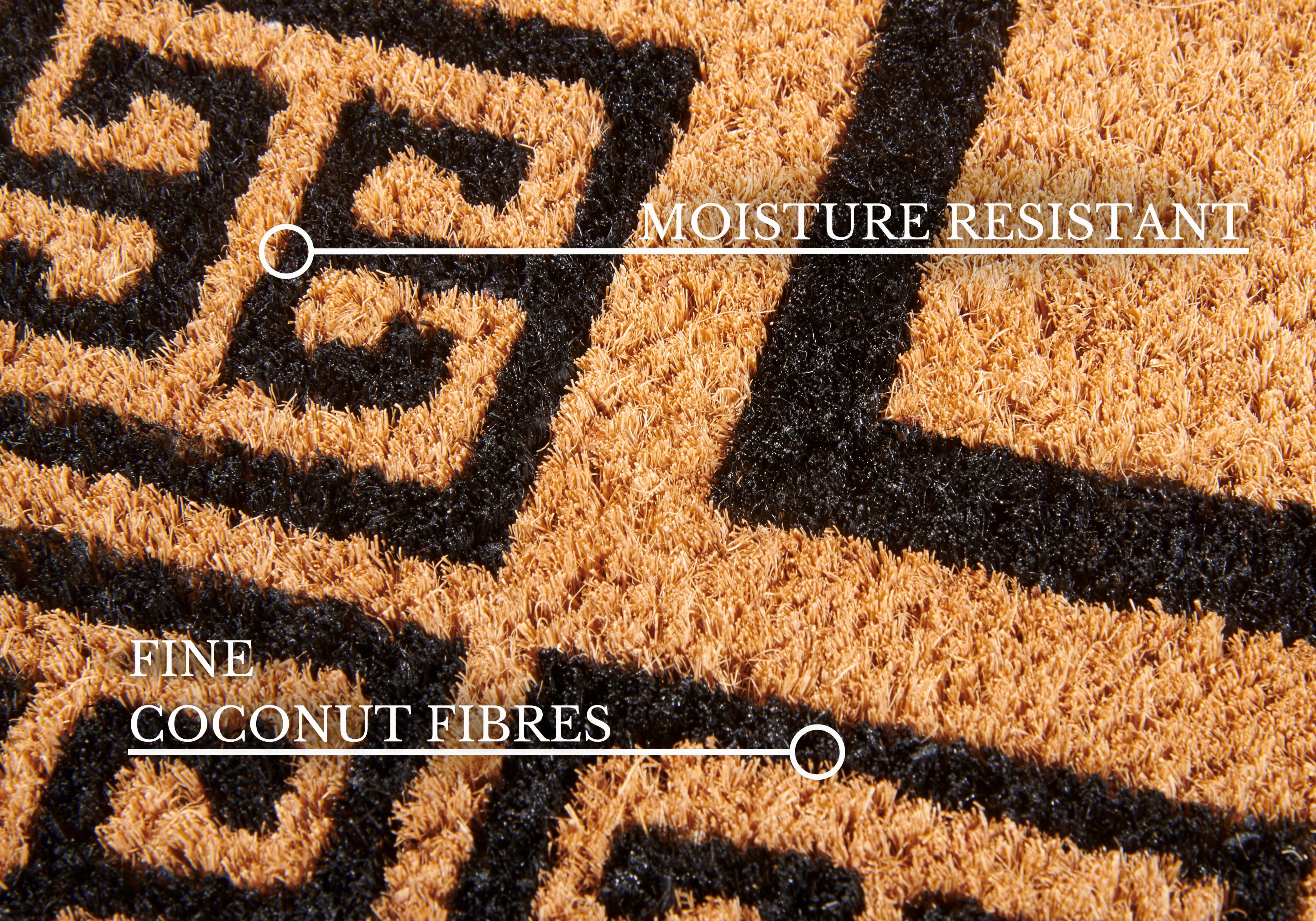 Kokosfibrene er ikke blot smukke, de er også utroligt funktionelle. De naturlige fibre giver ikke næring til bakterier, hvilket betyder, at snavs og bakterier forbliver på måtten og ikke transporteres ind i dit hjem. Den skridsikre bagside i 100% PVC sørger for, at måtten ligger stabilt på gulvet, selv ved hyppig brug. Den robuste konstruktion af kokosfibre og PVC-bagside sikrer lang holdbarhed og gør måtten nem at rengøre.