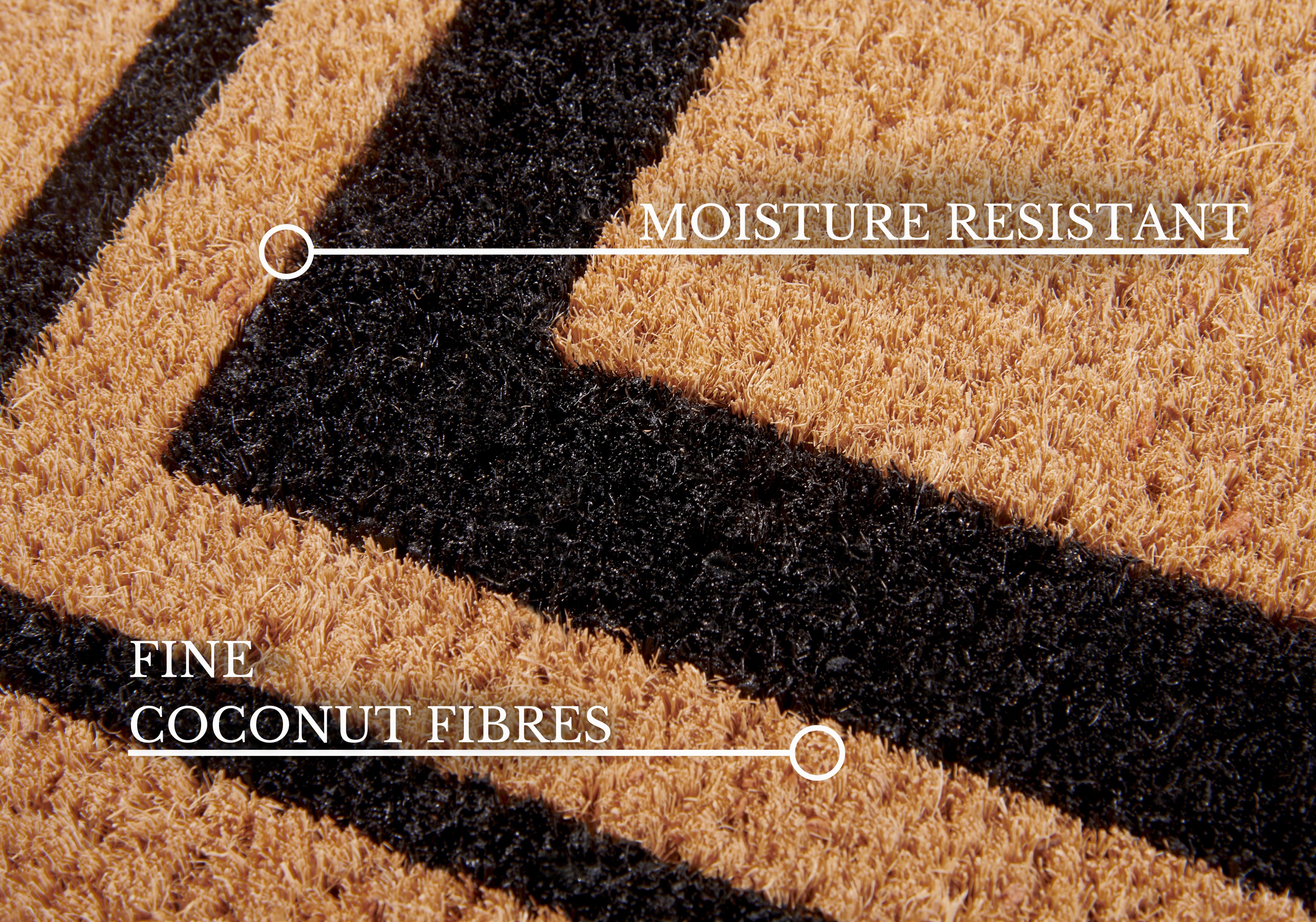 Kokosmåttens naturlige fibre skaber ikke blot en hyggelig atmosfære, men er også utroligt praktiske. Kokosfibrene giver ingen næring til bakterier, så både snavs og bakterier forbliver på måtten og transporteres ikke ind i boligen. Den skridsikre bagside i 100% PVC sørger for, at måtten ligger sikkert på plads, selv på glatte gulve. Det robuste materiale sikrer lang holdbarhed, så du kan nyde din kokosmåtte i mange år.