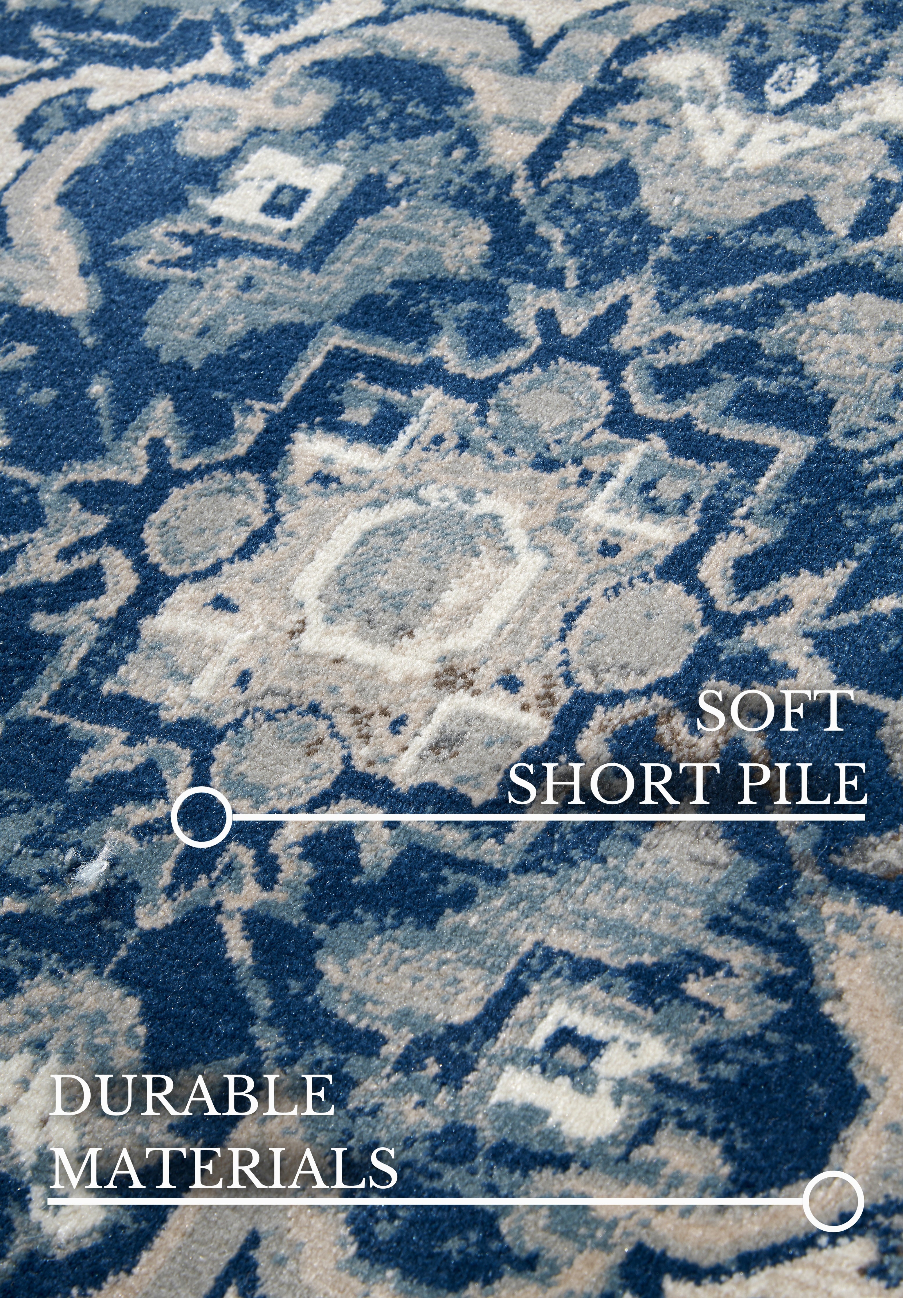 Dette tæppe er mere end bare smukt; det er også designet til at holde. Den robuste konstruktion i polypropylen gør det utroligt slidstærkt og nemt at rengøre, perfekt til travle hverdage. Bagsiden i 100% latex giver et sikkert greb på gulvet og forhindrer glid, samtidig med at det beskytter dine gulve mod slid. Den høje kvalitet i både materialer og udførelse sikrer et tæppe, du kan nyde i mange år. Med sin klassiske design og moderne farvekombination er det et elegant supplement til ethvert rum.