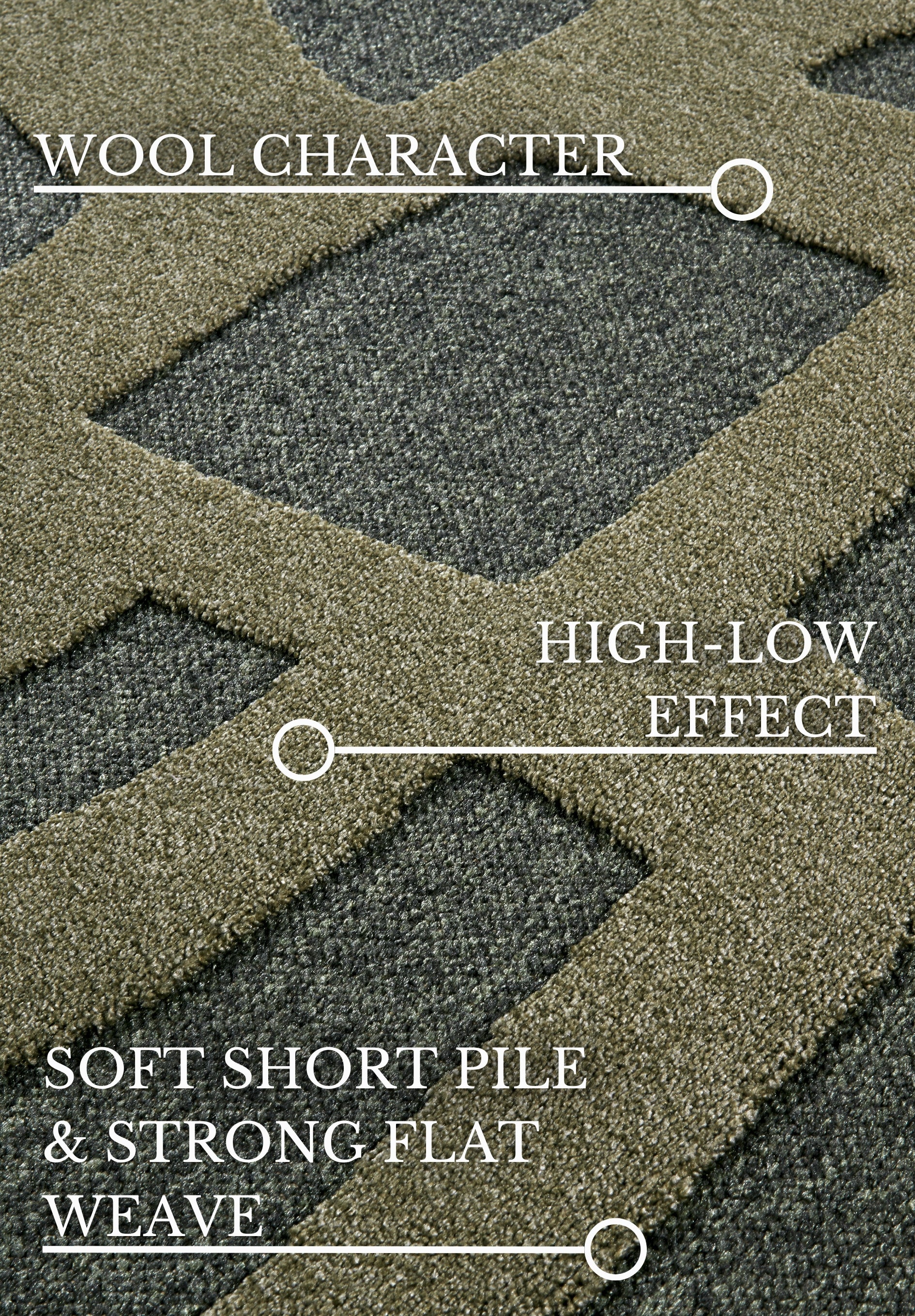 Tæppets moderne, grafiske design med en spændende high-low effekt skaber et dynamisk og levende udtryk i rummet. Den robuste overlock-kantafslutning sikrer lang holdbarhed og en flot finish. Bagsiden, bestående af en blanding af bomuld, polyester og viskose, giver tæppet stabilitet og en blød fornemmelse mod gulvet. Tæppet er velegnet til gulvvarme, hvilket gør det til et praktisk og komfortabelt valg året rundt. Den bløde, uldagtige karakter kombineret med den livlige grønne farve skaber en varm og indbydende atmosfære.