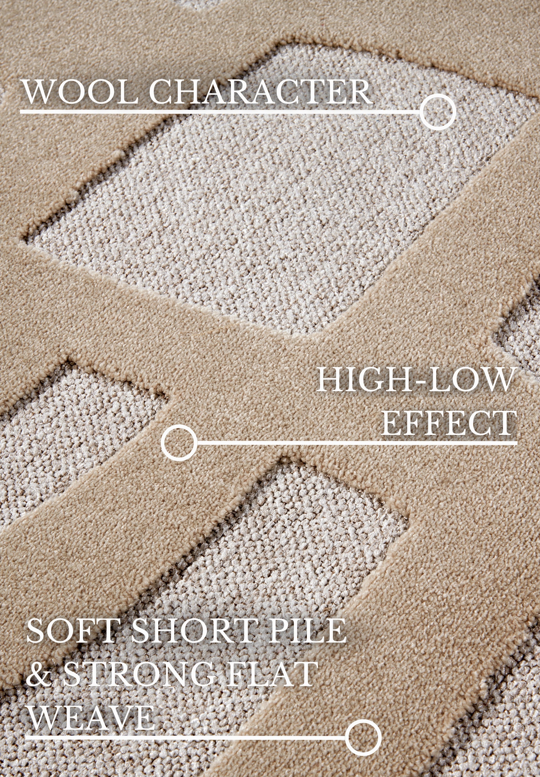 Tæppets robuste konstruktion og den slidstærke overlock-kantafslutning sikrer lang holdbarhed, mens bagsiden, bestående af en blanding af bomuld, polyester og viskose, giver stabilitet og komfort. Den bløde, uldlignende tekstur føles behagelig under fødderne, og de levende farver bevarer deres intensitet. Tæppet er desuden velegnet til gulvvarme, hvilket gør det til et praktisk og stilfuldt valg til ethvert moderne hjem.