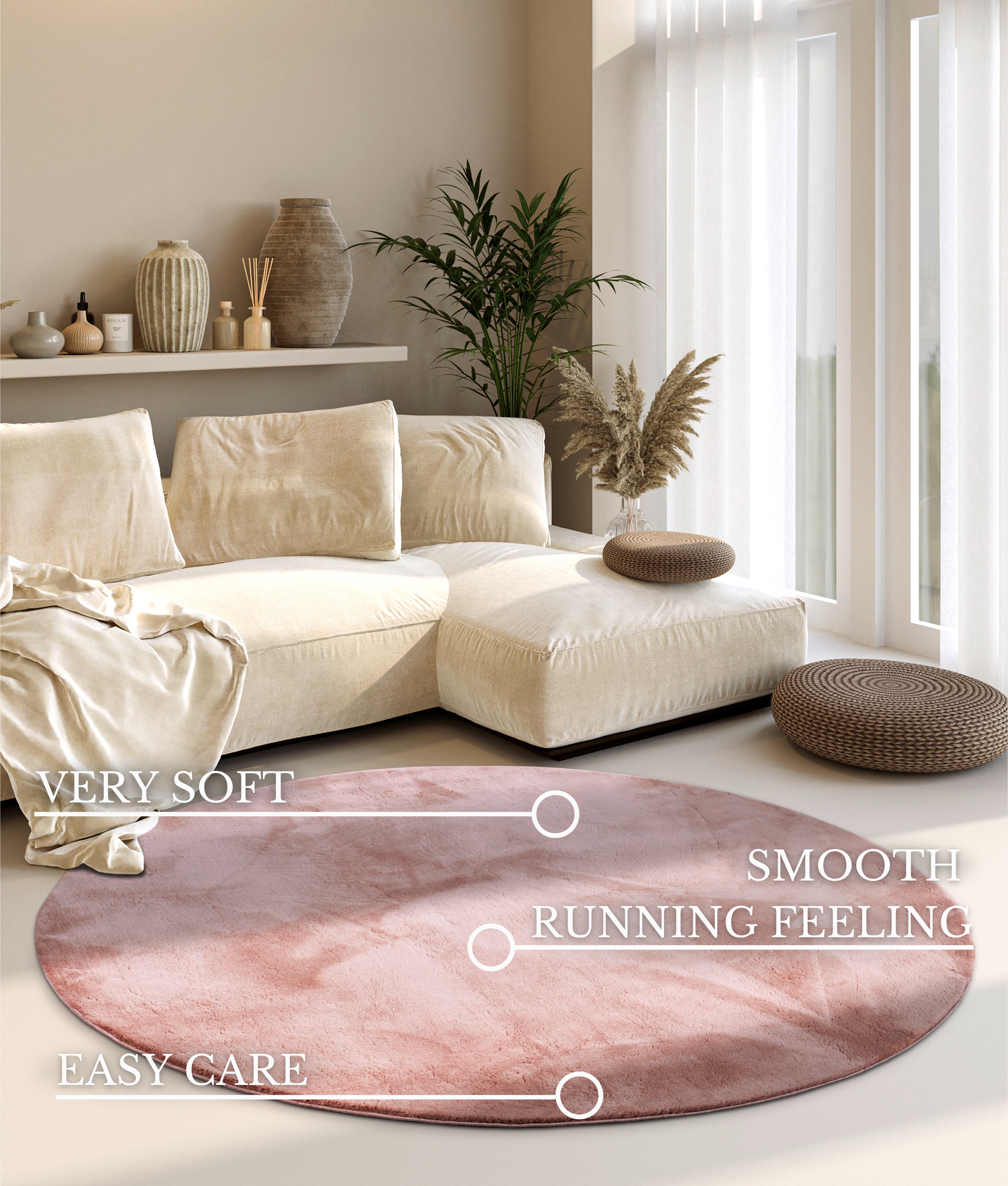 Forkæl dit hjem med den bløde elegance fra Villeroy & Bochs "Kollektion 1899". Dette smukke, runde tæppe i en delikat rosa farve er fremstillet af 100% polyester, der skaber en luksuriøs og indbydende atmosfære i ethvert rum.