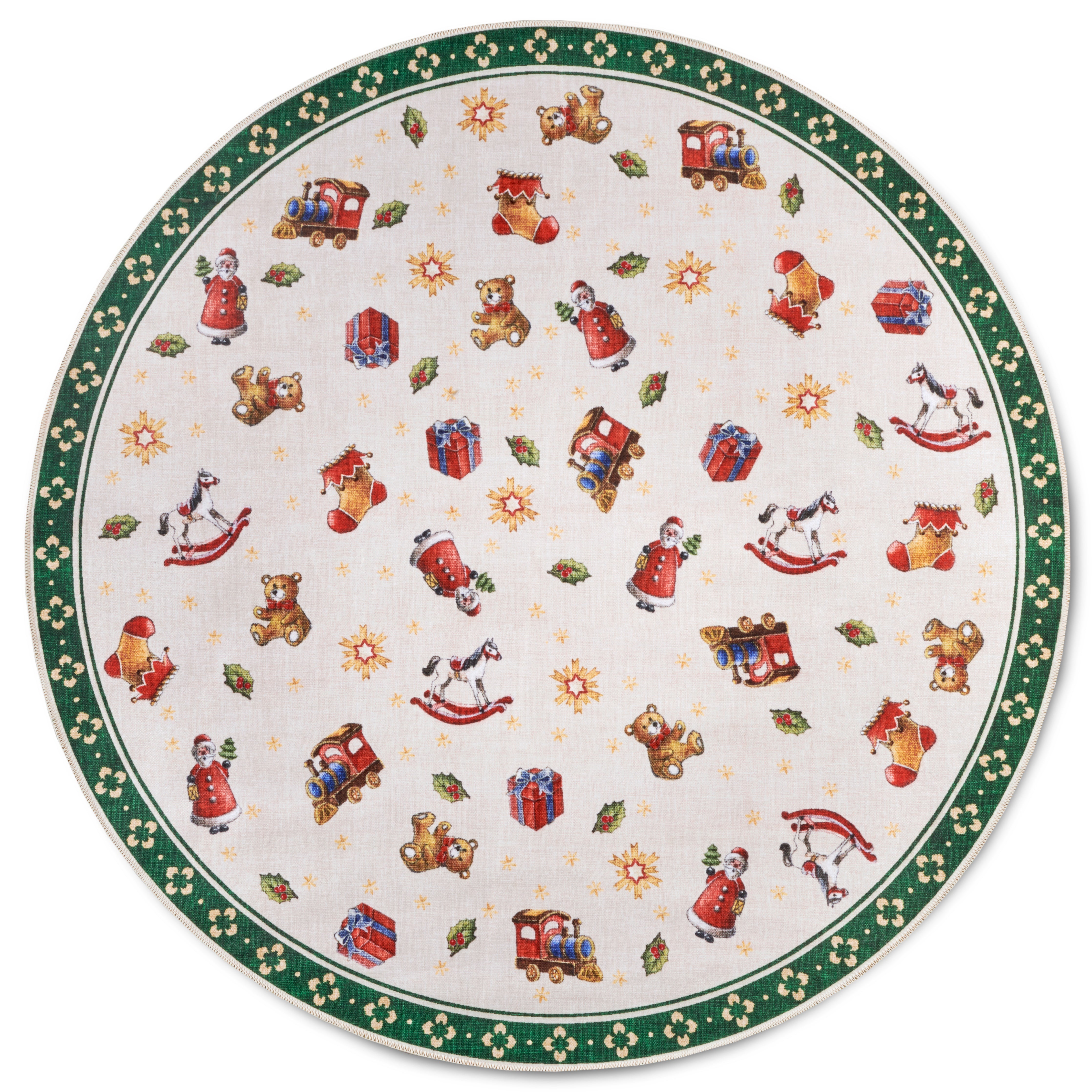 Skab en magisk julestemning i børneværelset med dette fortryllende runde tæppe fra Villeroy & Bochs Toy's Delight kollektion. Det bløde, 100% polyester tæppe prydes af det klassiske Toy's Delight design med legende julemotiver i grønne og multifarvede nuancer, der vil bringe et smil frem hos både store og små.