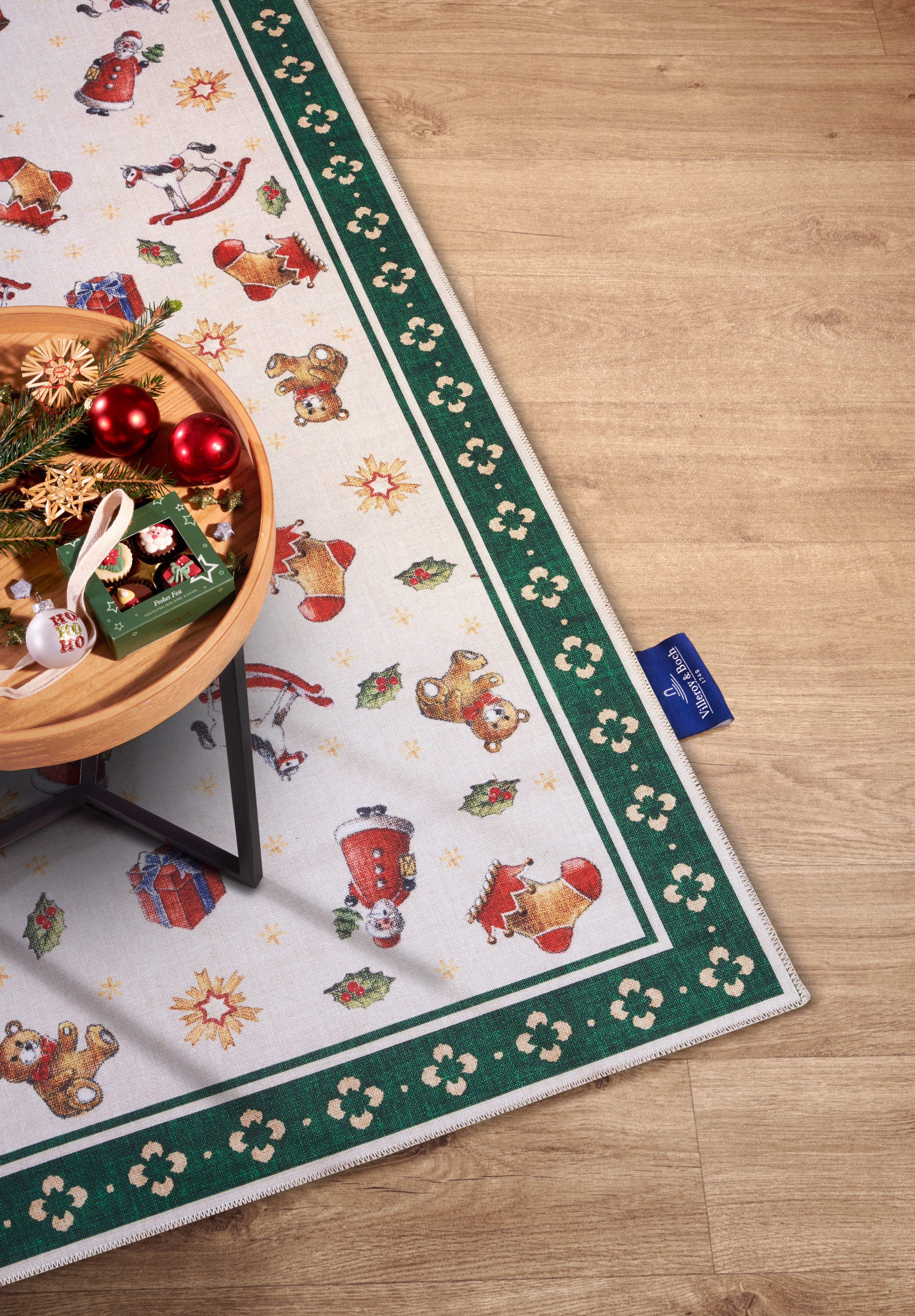 Med en luvhøjde på blot 0.3 mm føles tæppet behageligt blødt under fødderne. For at bevare tæppets farver og kvalitet anbefales professionel rengøring. Giv dit barn en uforglemmelig jul med dette charmerende Villeroy & Boch børnetæppe.