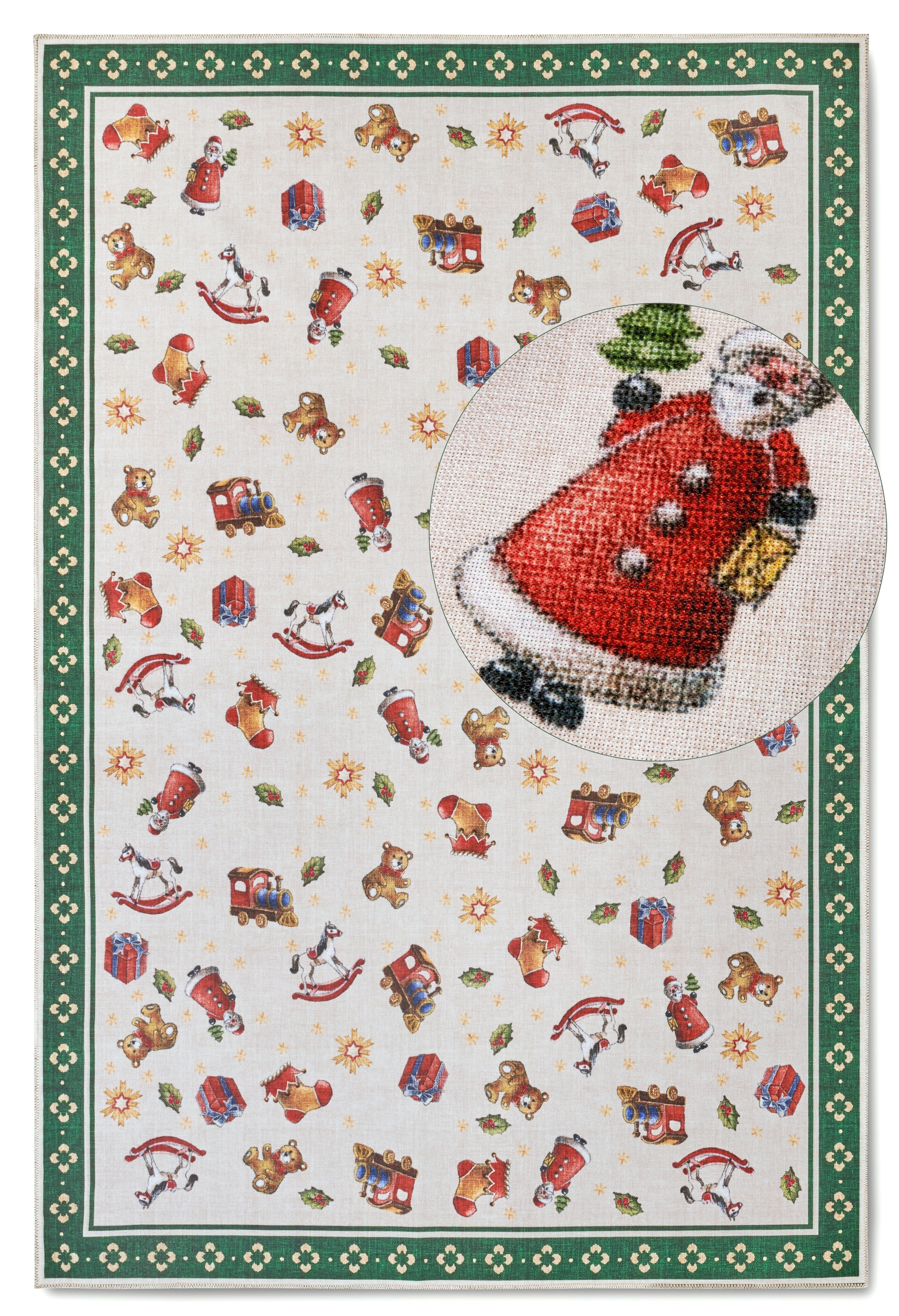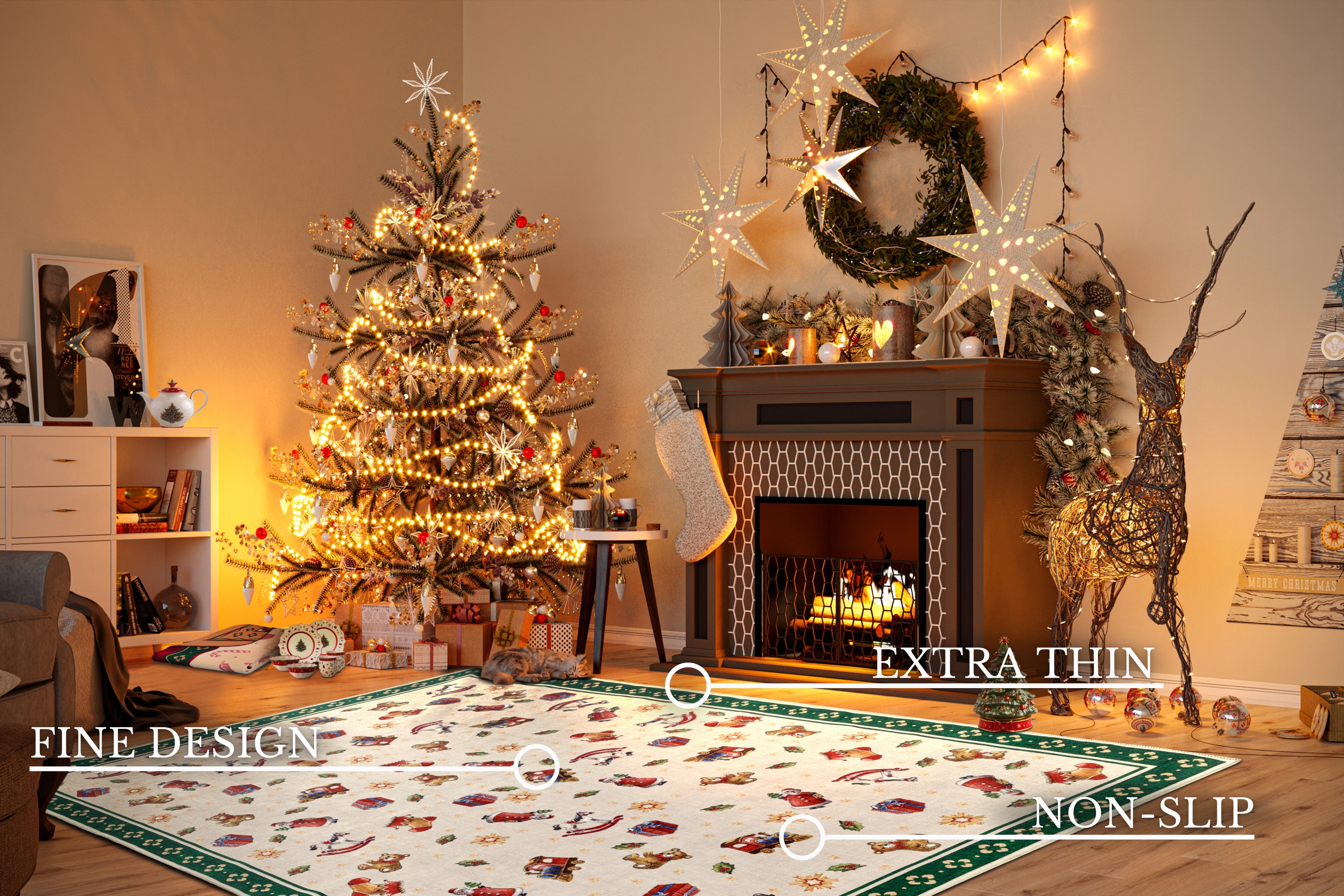 Tæppets bagside i 100% TPR giver et sikkert og skridsikkert underlag, perfekt til leg og julehygge. Den robuste, chained kantafslutning sikrer lang holdbarhed og et flot finish, mens de syntetiske fibre gør tæppet nemt at rengøre – en klar fordel i et børneværelse. Nyd den trygge fornemmelse af et tæppe, der både er smukt og praktisk.