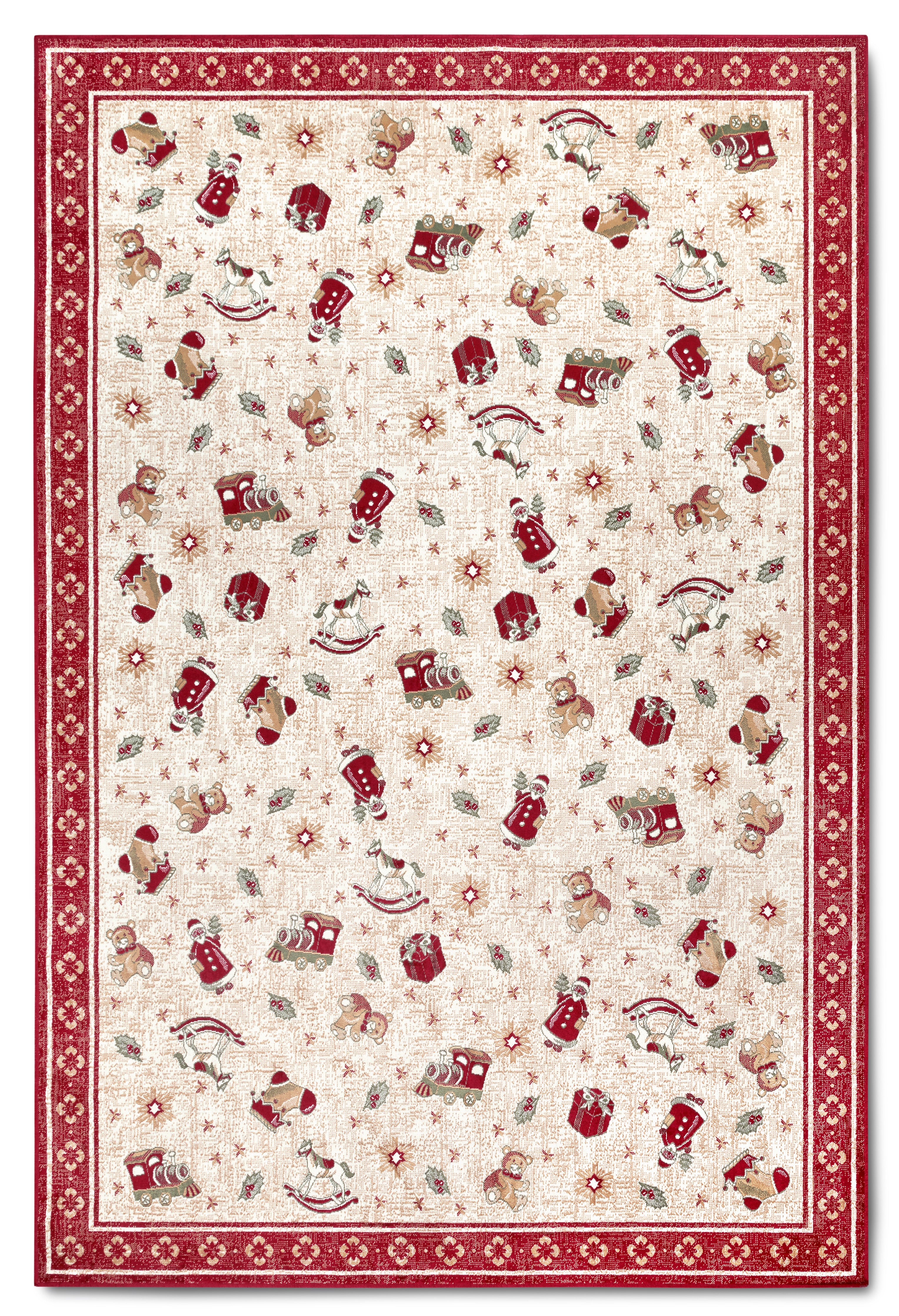 Skab en magisk julestemning på børneværelset med dette fortryllende Villeroy & Boch Toy's Delight børnetæppe. Det bløde og festlige tæppe, vævet i en blanding af bomuld og viskose, bringer nostalgisk juleglæde ind i ethvert rum med sit legende design.