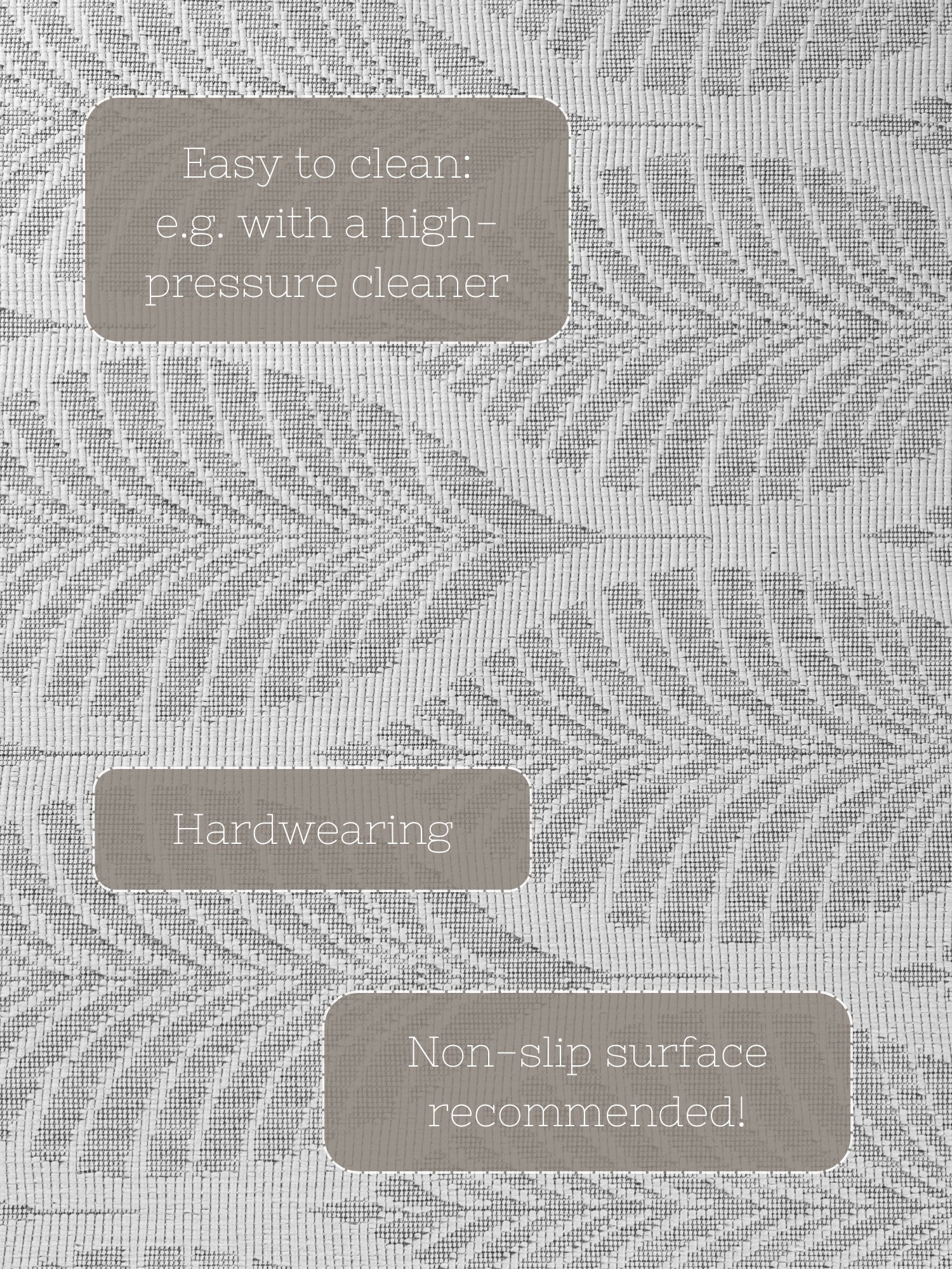 Duet tæppet er en sand multikunstner. Det vendbare design giver dig to forskellige looks i én, så du nemt kan forny din indretning. Den fladvævede konstruktion gør tæppet robust, smudsafvisende og vejrbestandigt, perfekt til det omskiftelige danske vejr. Tæppet er maskinfremstillet og egnet til gulvvarme, hvilket øger komforten yderligere. Den slidstærke polypropylen bagside sikrer stabilitet og forlænger tæppets levetid.