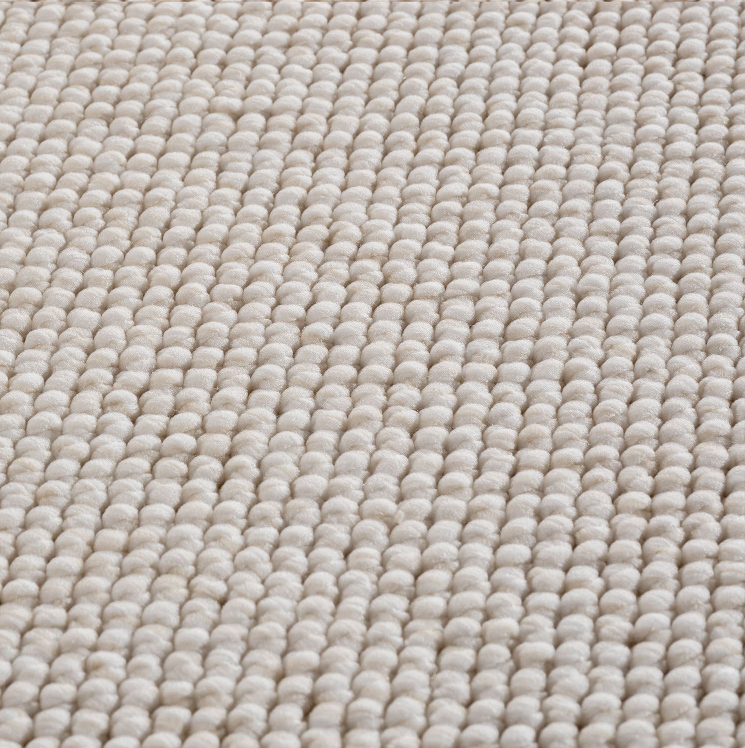 Med sin neutrale 3 forskellige farvetoner  beige, creme og lysegrå passer tæppet nemt ind i enhver indretning og giver et varmt, indbydende look til dit hjem.