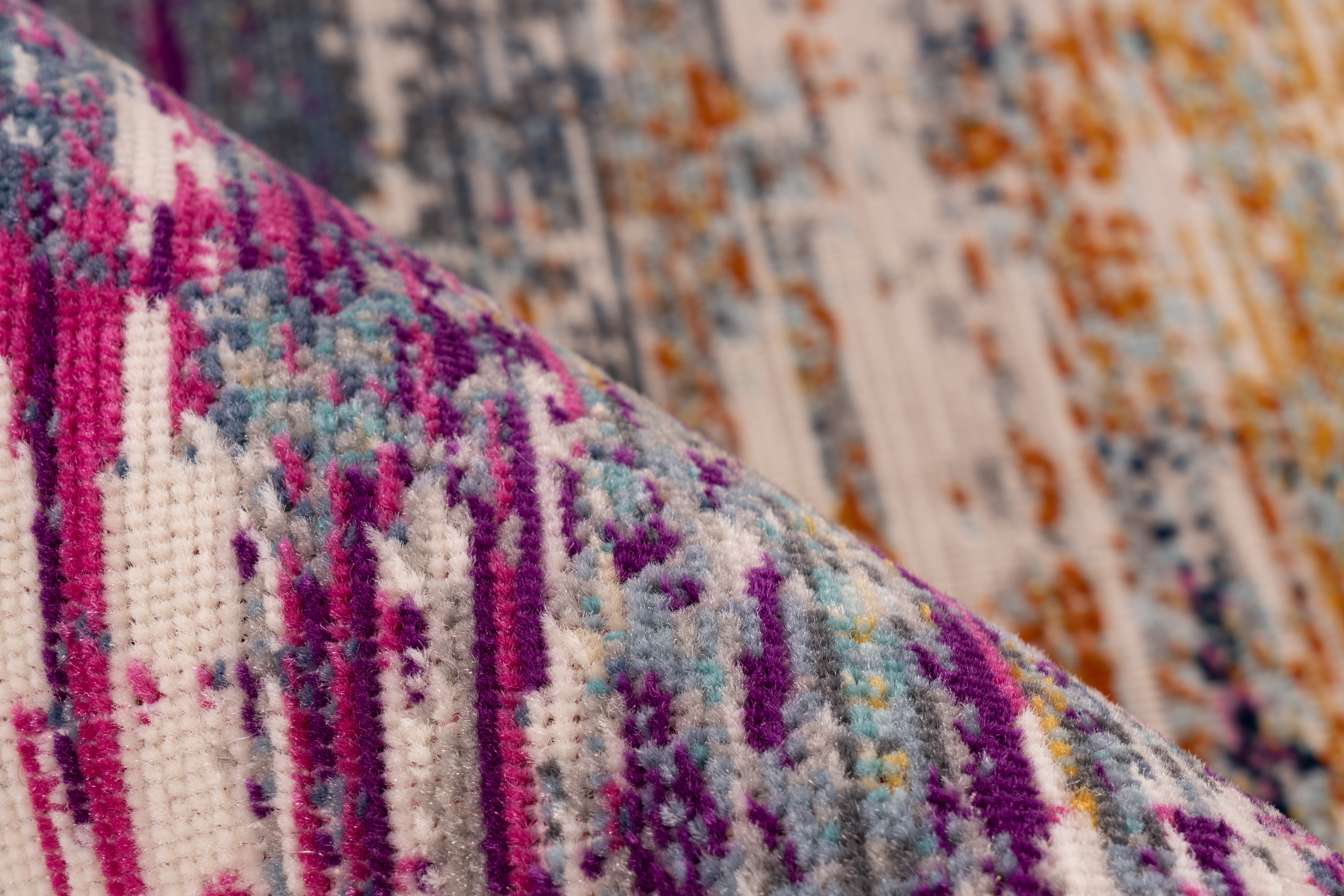 Det attraktive design på dette vintage-tæppe er imponerende på alle måder. Harmonisk afstemte farver og et stilfuldt design gør tæppet til et blikfang i ethvert rum. Bløde frynser i enderne fuldender det samlede look. En anden fordel er det letplejede, ekstremt flade materiale, der gør denne model til et alsidigt stykke møbel, der kan bruges selv i rum, der bruges ofte.