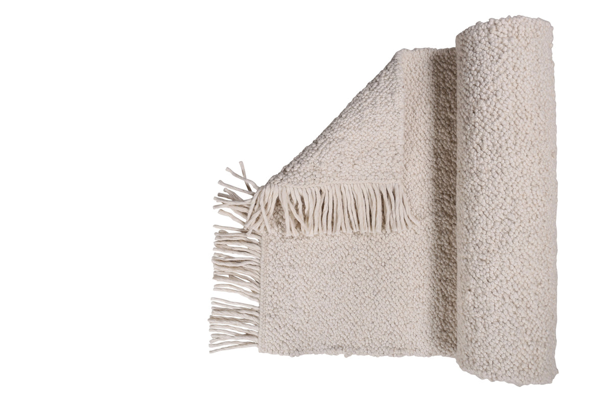 Skab et blikfang, der imponerer og indretter din stue hyggeligt med et eksklusivt uldtæppe! Betina tæppeserien byder på håndvævede uldtæpper med en teknik, der giver tæppet en dejlig knudetekstur med stor komfort at gå på og kan findes i forskellige størrelser og farver - vælg det, der passer bedst til dit hjem! Denne rektangulære skønhed har et moderne design og indbydende funktioner. Den hvide farve giver varme til rummet og den råhvide frynserække på de korte sider bliver en lækker detalje. Materialet føles både luksuriøst og har flere attraktive egenskaber, der giver dig et trofast tæppe over tid. Forkæl fødderne og nyd et moderne blikfang i stuen! Tips til uldtæpper: Uld er et naturmateriale, der både er slidstærkt og smudsafvisende. Pletter på uldtæpper skal fjernes med det samme ved at bruge køkkenrulle eller en ren klud for at absorbere hurtigt. Hvis pletten allerede er suget ind i tæppet, kan en klud med varmt vand være en god løsning, hvis kun lunkent vand ikke er nok, kan der tilsættes en lille smule mildt rengøringsmiddel.