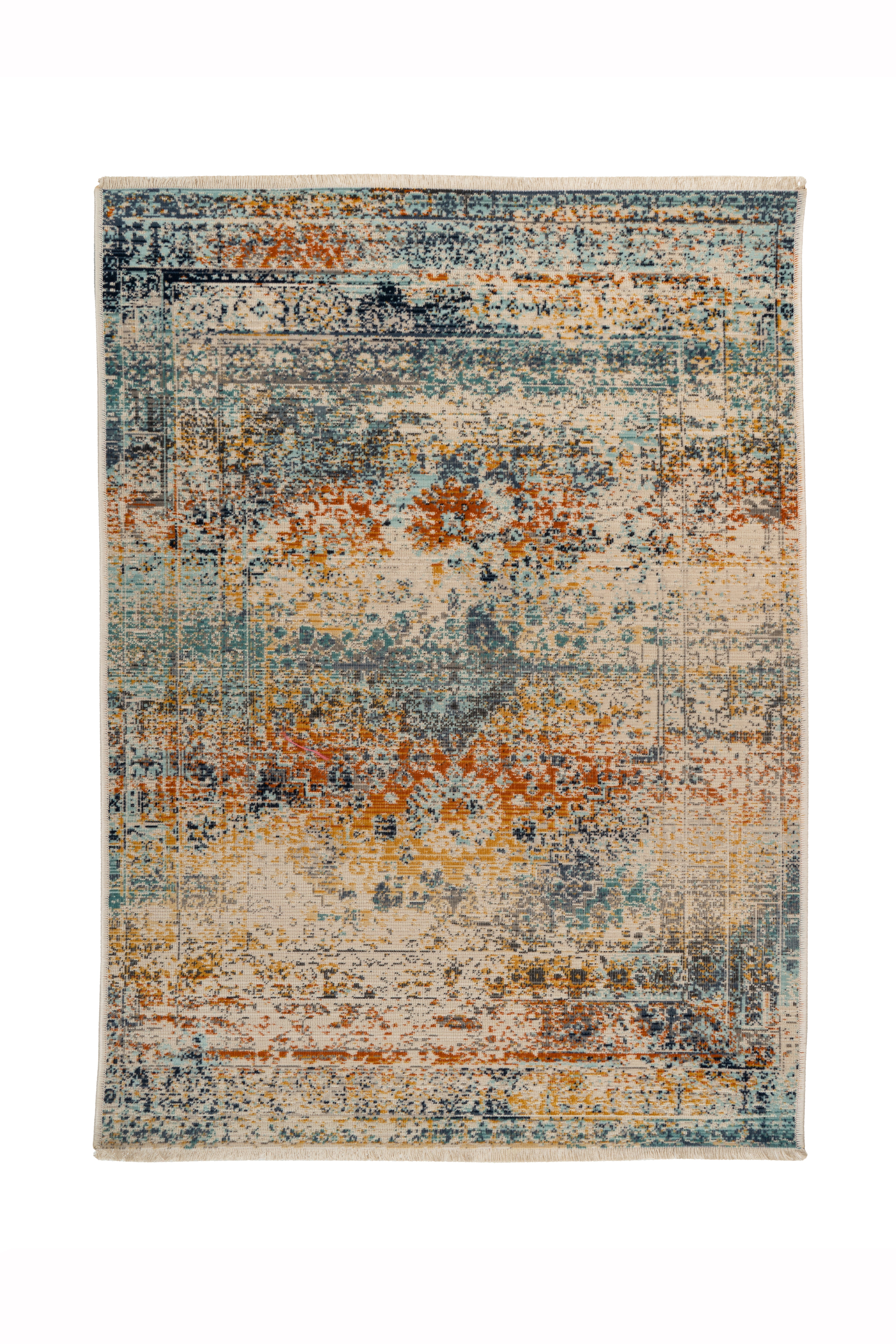 Dette stilfulde tæppe med et slidt look fås i en række forskellige farver. Det maskinvævede tæppe er lavet af 100% polypropylen og er skridsikkert. Den lave tykkelse på kun 3,5 mm gør det særligt robust og nemt at vedligeholde – et slidstærkt tæppe til enhver lejlighed!