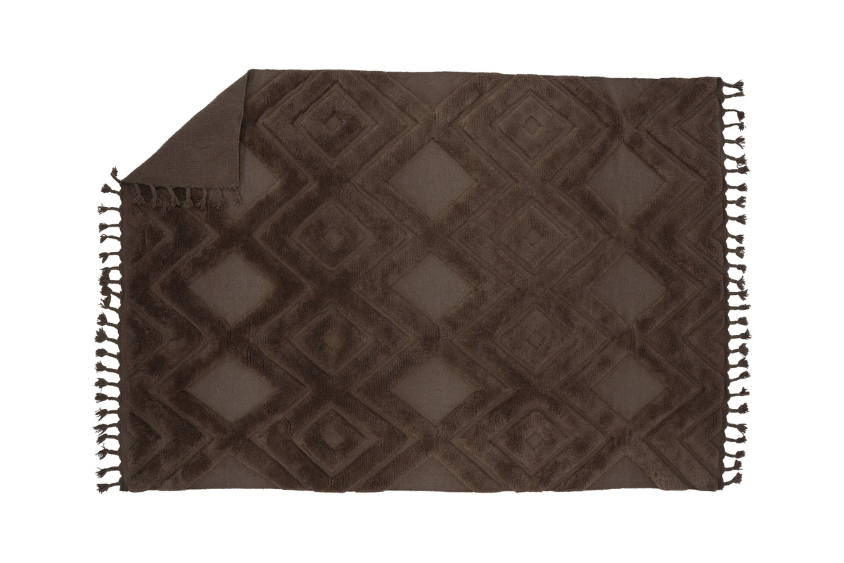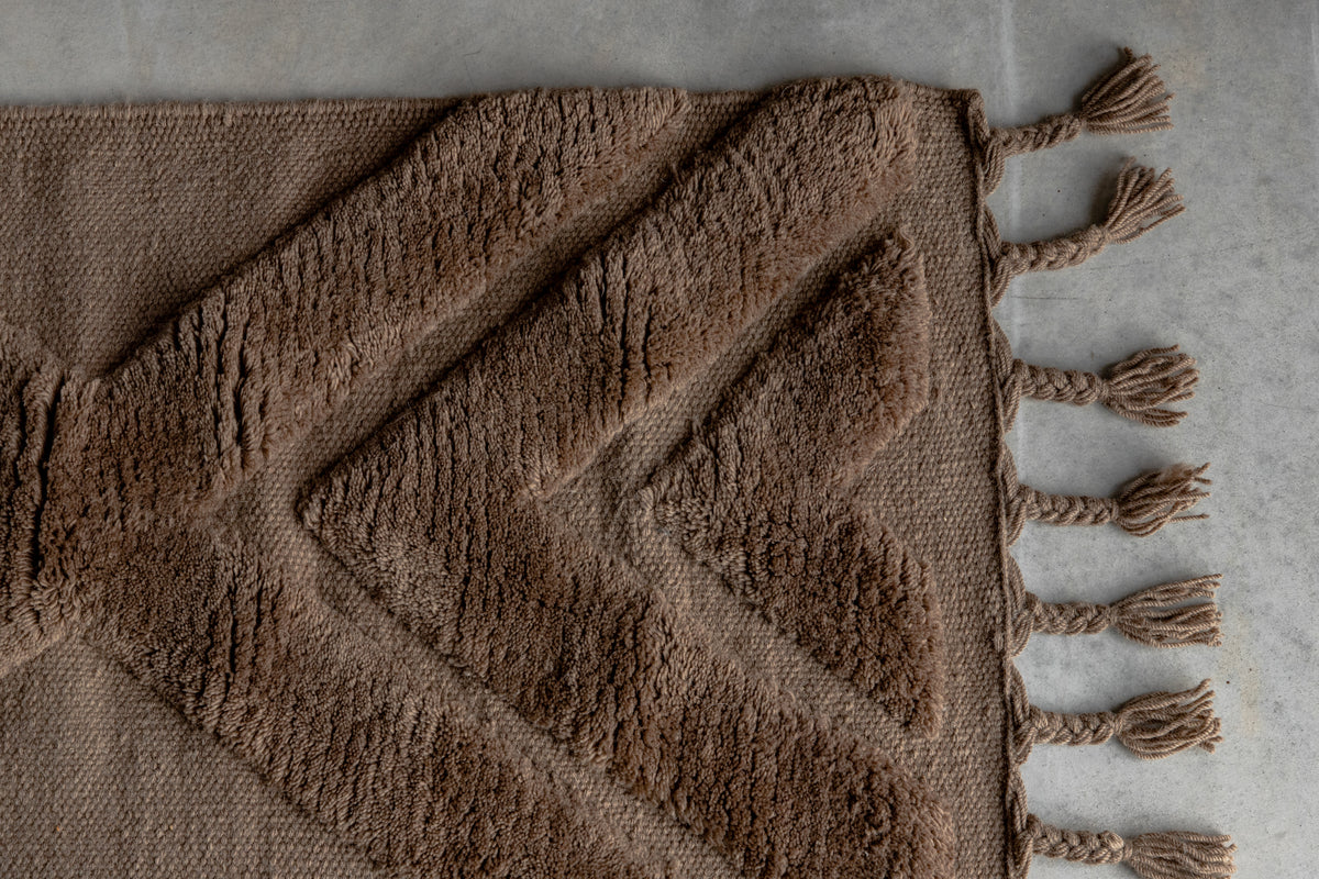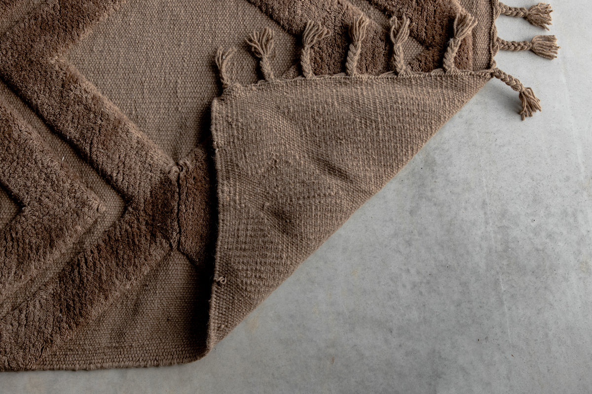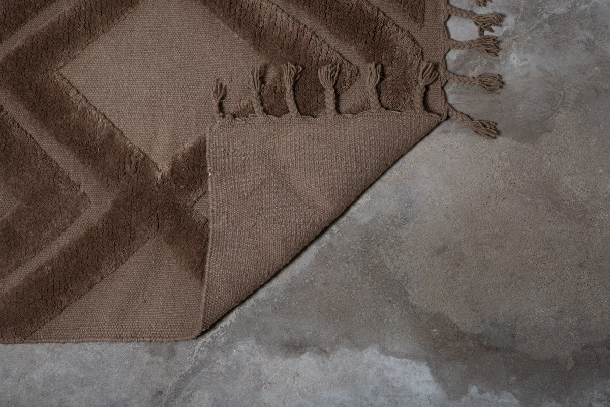 Dahlia tæppeserien imponerer med sit moderne og gennemtænkte design! Denne skønhed er håndvævet i uld og har et dekorativt højt/lavt relief -tekstureret mønster, der tilføjer en ekstra dimension til blikfanget.