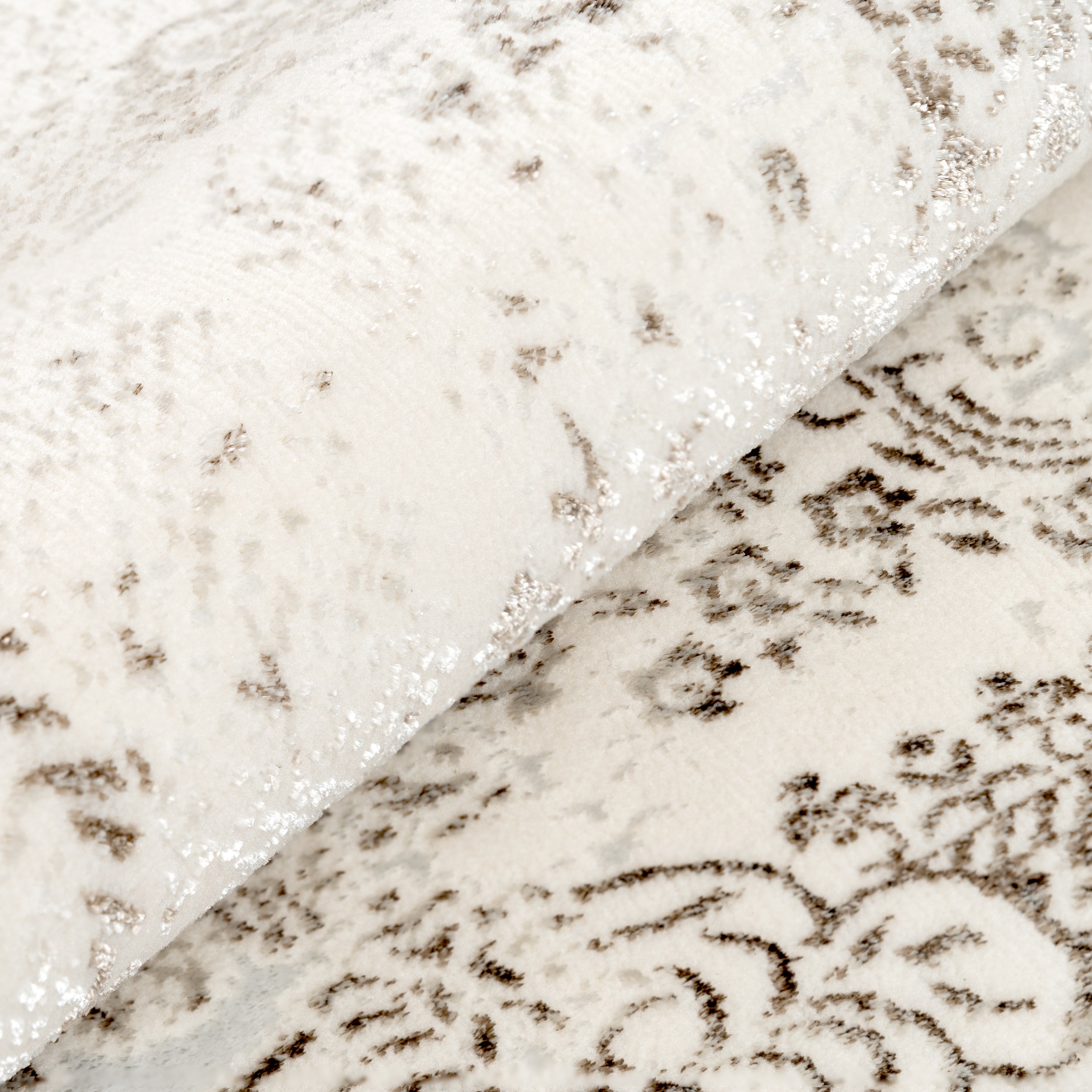 Tæppet er maskinfremstillet af 100% Polyester med shiny viscose effekt.