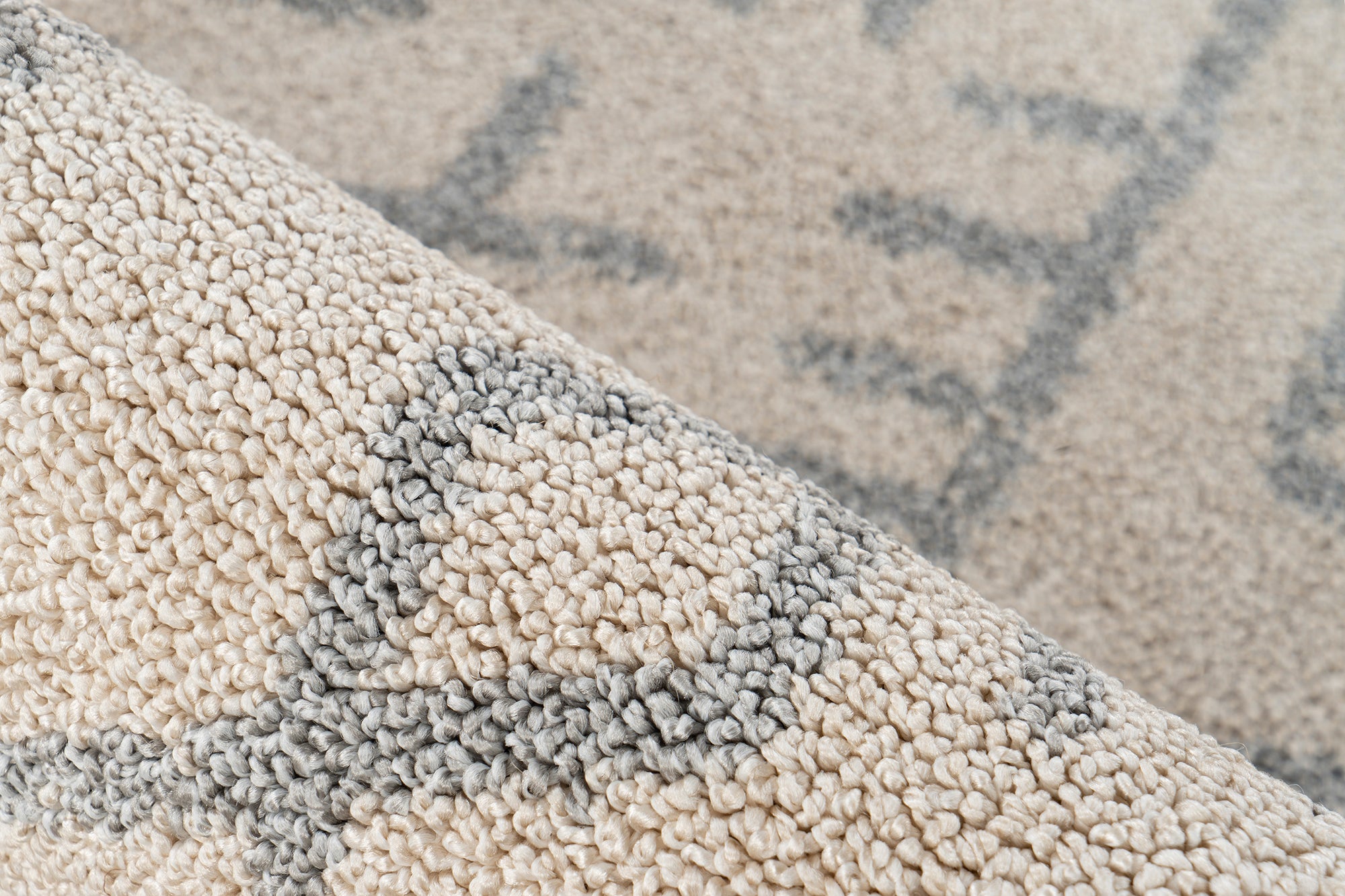 Dette tæppe imponerer med sit moderne, nordiske design. Med sine behagelige farver passer det perfekt til din indretningsstil og skaber en hyggelig og behagelig atmosfære i rummet. Takket være det smukke grafiske mønster er det også et stilfuldt blikfang, der øjeblikkeligt forbedrer dit hjem. Kombiner tæppet med lyse møbler på smukke trægulve for eksempel for at skabe et moderne, skandinavisk look. Uanset om det er i stuen, under spisebordet eller på kontoret: Det høje kvalitetshåndværk garanterer, at du vil have glæde af det i lang tid. Forkæl dig selv med dit nye tæppe i dag, og nyd snart en ny, hyggelig følelse i dit værelse!