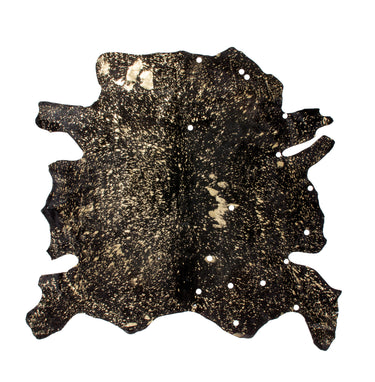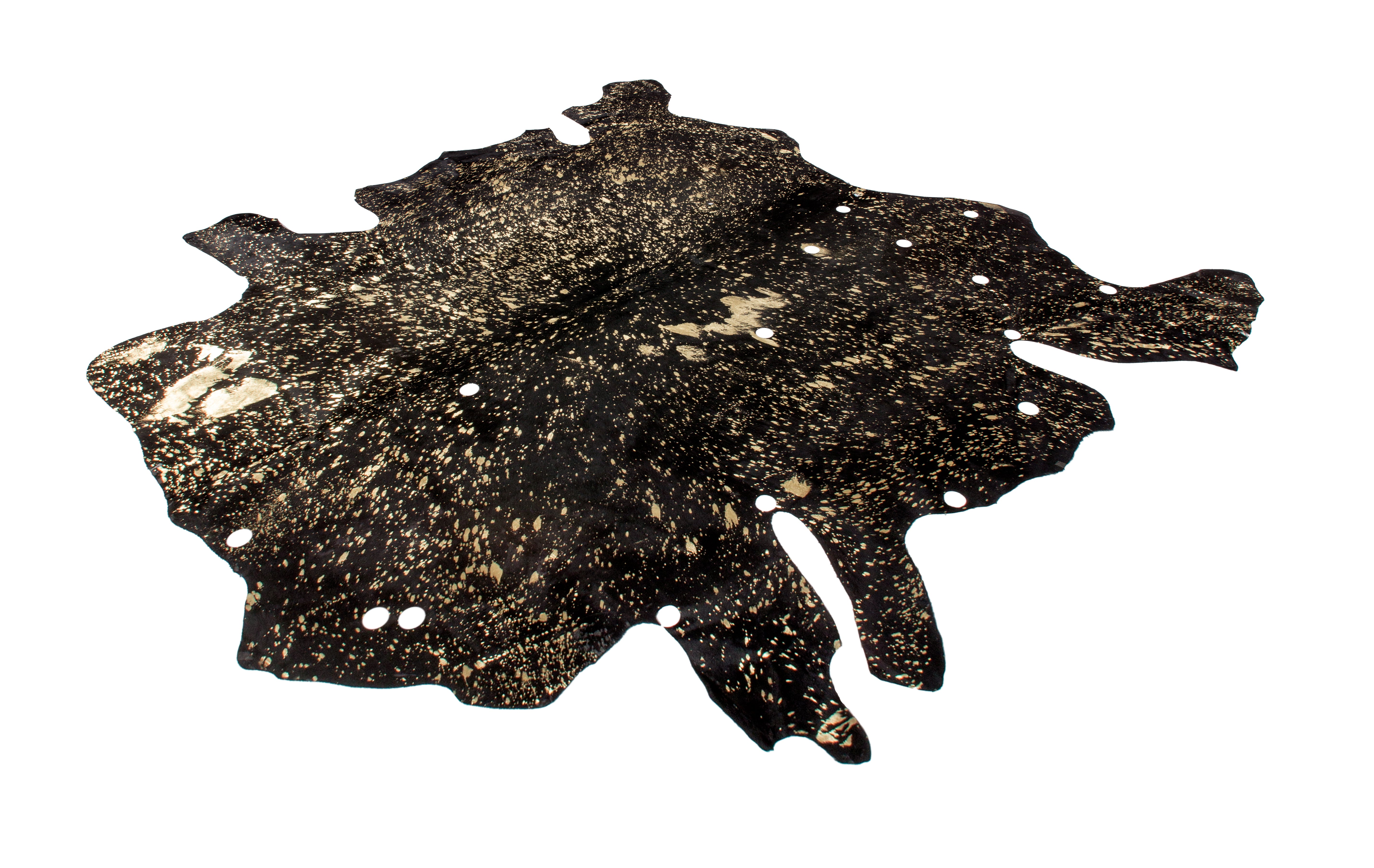 Designet på dette lædertæppe er kendetegnet ved ægte farvet læder, elegante guld- eller sølvdetaljer og en naturlig kontur. Attraktive udskæringer, der varierer i form og størrelse, giver tæppet et unikt udseende. Dette lædertæppe ser særligt iøjnefaldende ud i rum med minimalistiske, underspillede møbler og i kombination med træ eller andre naturlige materialer. De trykte folieelementer i guld eller sølv formidler luksus og elegance. Skab en hyggelig og sofistikeret atmosfære i dit hjem ved at bruge kohudstæppet som gulvbelægning, siddehynde eller vægophæng. Denne hyggelige gulvbelægning kan også bruges i rum med gulvvarme. Øg hyggefaktoren yderligere ved at placere puder, siddehynder og tæpper i nærheden af tæppet. Tæppet er lavet af 100% ægte kohud af høj kvalitet, er særligt nemt at pleje og kan nemt rengøres ved blot at støvsuge, banke eller tørre af med en fugtig klud. Dette lette, flade, attraktive lædertæppe beskytter dit gulv og tilføjer et sofistikeret touch til ethvert rum med sin eksklusivitet og naturlighed. Ægte kohud er et unikt stykke, så variationer i farve og tekstur kan forekomme. Dette gør hvert tæppe unikt, da ingen to skind er identiske. Naturskind kan fælde hår og plette en smule med tiden og ved kraftig brug. Metallfolien kan også skalle af nogle steder. Dette skyldes materialets naturlige natur og er ikke en fabrikationsfejl eller et kvalitetsproblem.