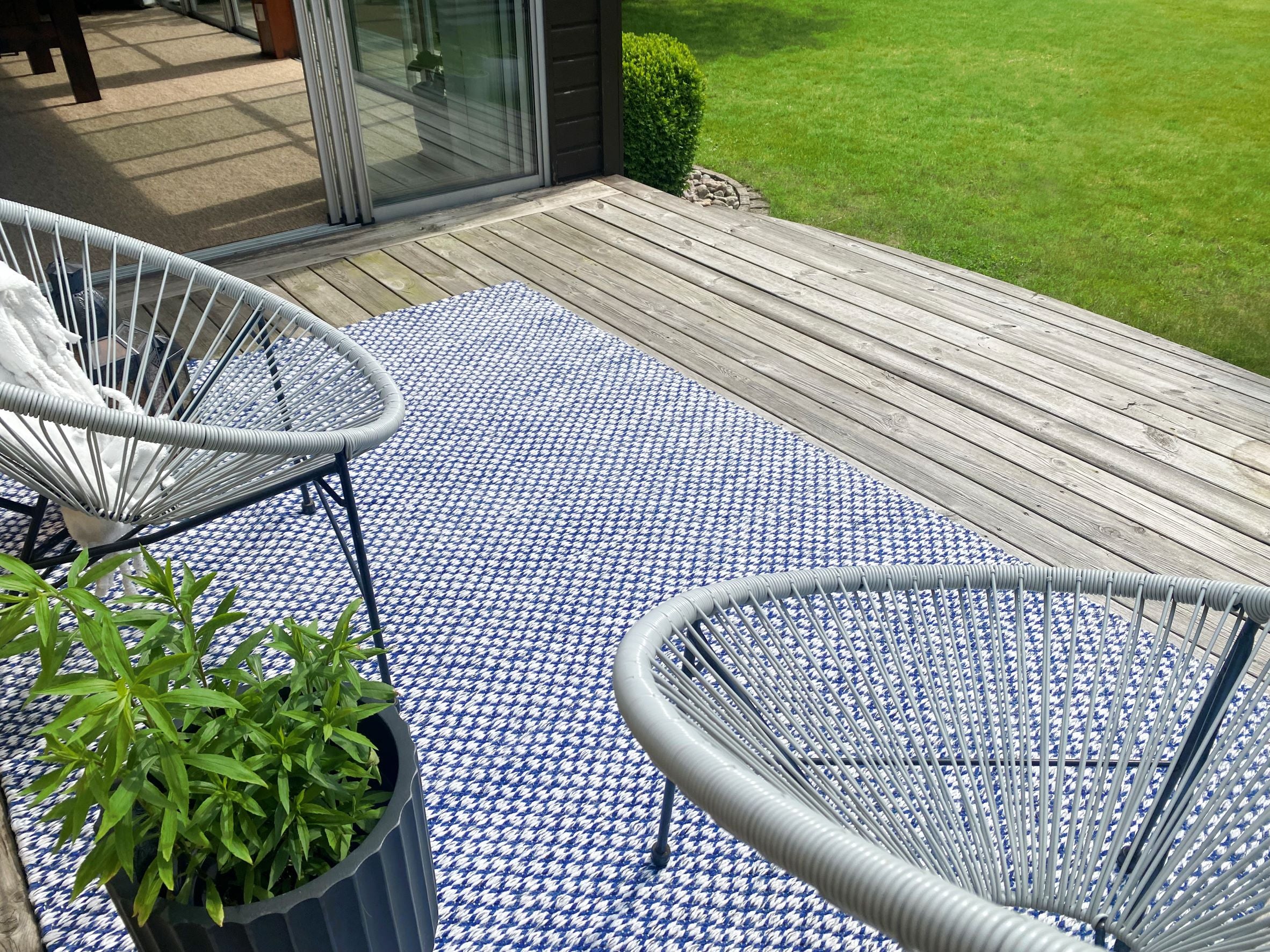 Tæppe håndlavet af genbrugs plastikflasker. Flaskerne smeltes og laves om til tæppefibre. Derfor kan dette tæppe tåle vand, hvilket gør at den også er egnet som både udendørs og indendørs tæppe. Tæpperne ser meget ud som om det er uld.