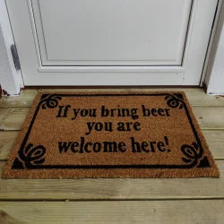 En humoristisk dørmåtte til dig der elsker øl. Den iøjnefaldende dørmåtte vil uden tvivl falde i god jord med gæster og familie. Dørmåtten kan anvendes både inde og ude