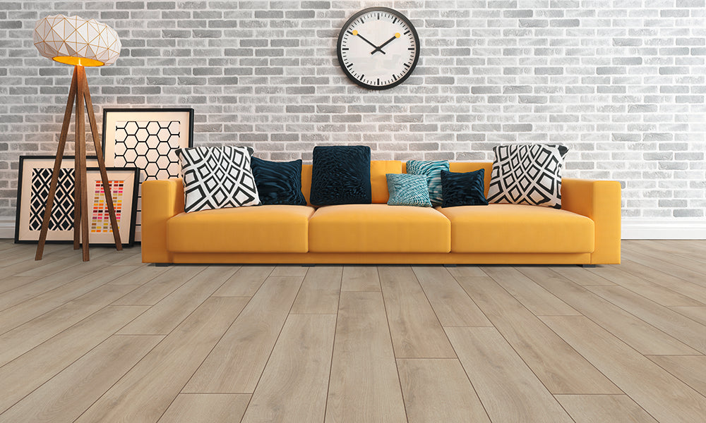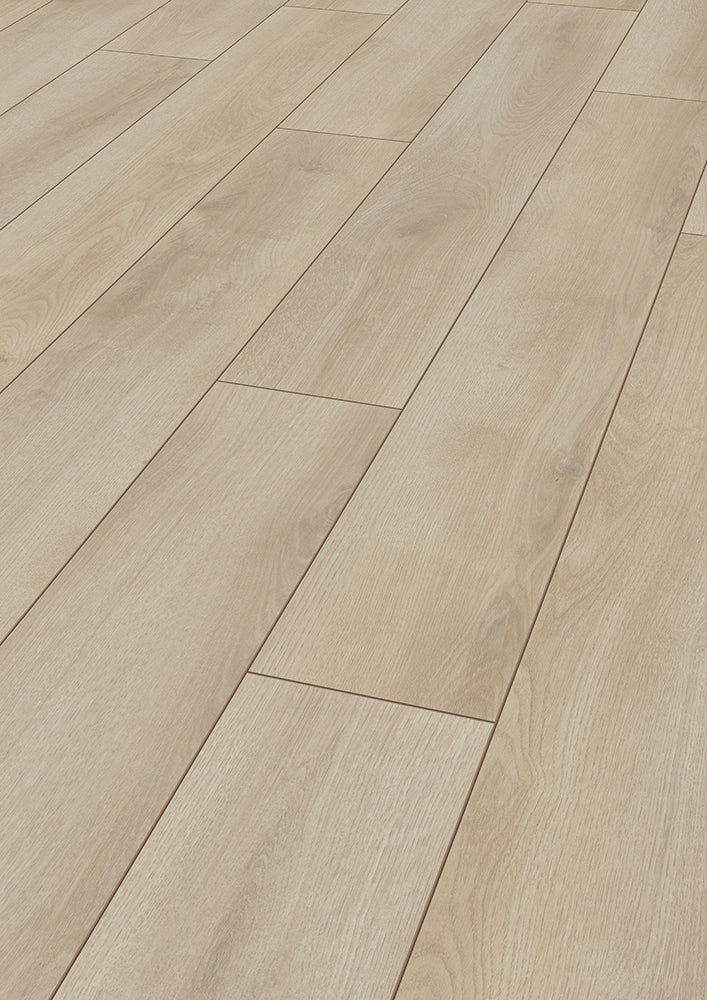 Rustikt plankelaminatgulv, der passer flot ind i tidens rustikke trend. Med fuge hele vejen rundt om planken, som giver et naturligt planke-look. Med kliksystem for nem montering.