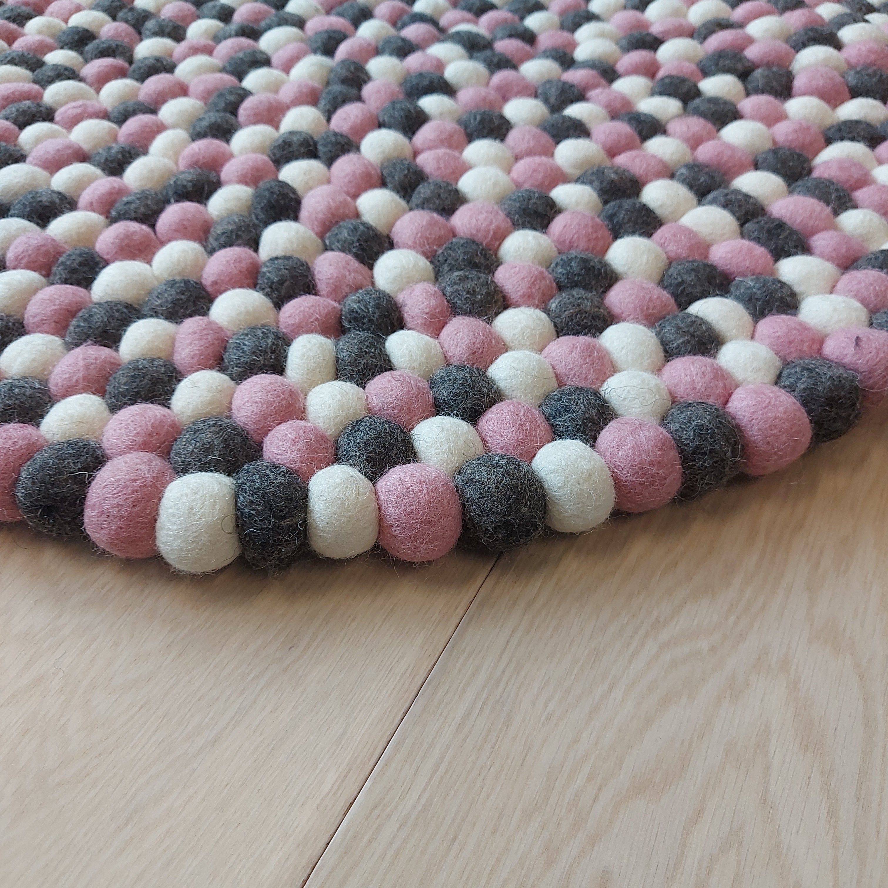 Kugle tæppe - Pink/Grå/Hvid