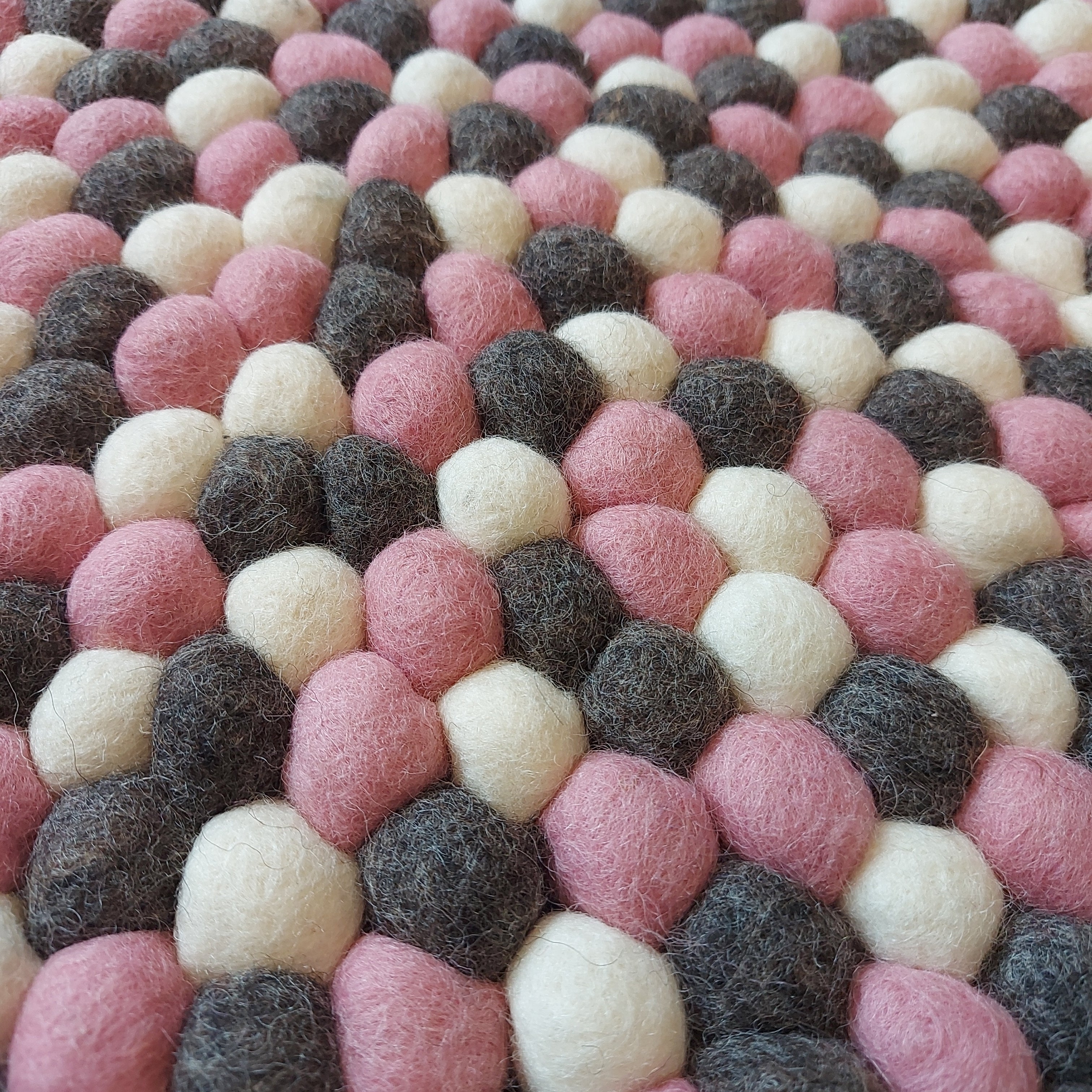 Alle vores smukke kugletæpper er i højeste kvalitet og består af små kulørte filtkugler, der bliver sammensat i hånden. På den måde er der ikke to tæpper der er ens, hvilket er en del af charmen, mindre variationer i størrelser kan forekomme.