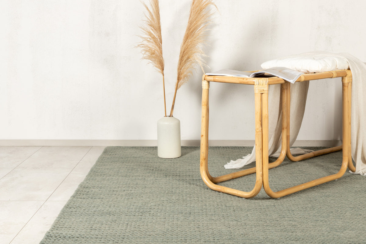 Uldtæppet Marta er et moderne lækkert tæppe, der imponerer med sit gennemtænkte design og indbydende egenskaber! Dette udelukkende tykke uldtæppe i et smukt mønster i grøn farve er både moderne og stilfuldt. Marta tæppeserien tilbyder dig håndvævede uldtæpper med flettede detaljer, der giver tæppet en dejlig tekstur med stor komfort at gå på. Materialet føles både luksuriøst og har flere attraktive egenskaber – robust, holdbart og praktisk! Placer under sofagruppen eller i soveværelset og nyd en hjemlig og hyggelig atmosfære. Tips til uldtæpper: Uld er et naturmateriale, der både er slidstærkt og smudsafvisende. Pletter på uldtæpper skal fjernes med det samme ved at bruge køkkenrulle eller en ren klud for at absorbere hurtigt. Hvis pletten allerede er suget ind i tæppet, kan en klud med varmt vand være en god løsning, hvis kun lunkent vand ikke er nok, kan der tilsættes en lille smule mildt rengøringsmiddel.