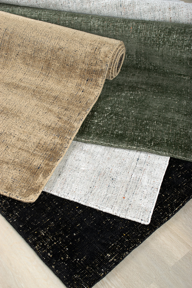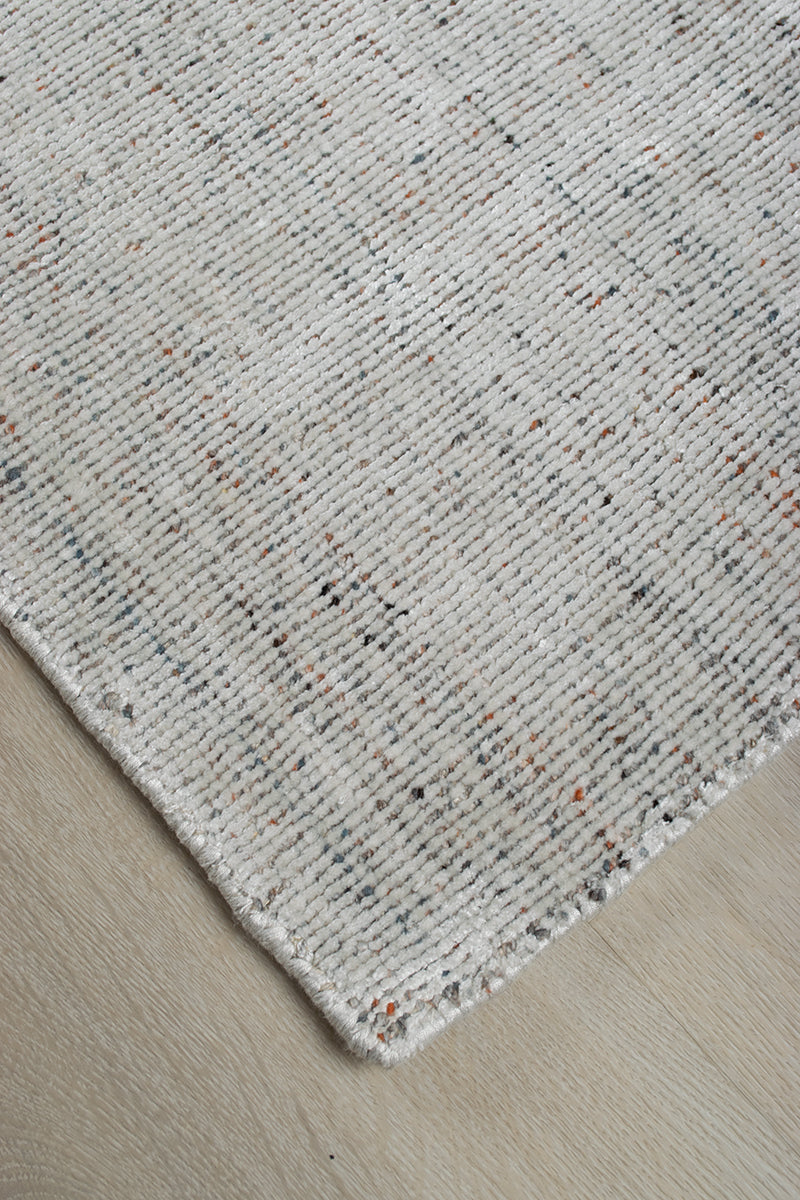 Narvik-tæppet er håndlavet af en blanding af 60% uld, 35% viskose og 5% bomuld, hvilket skaber en fin balance mellem naturlighed og elegance. Tæppet har en meleret struktur, der fremstår afdæmpet og raffineret. De subtile variationer i garnets nuancer tilfører dybde og et roligt udtryk, der passer smukt ind i både moderne og klassiske hjem.