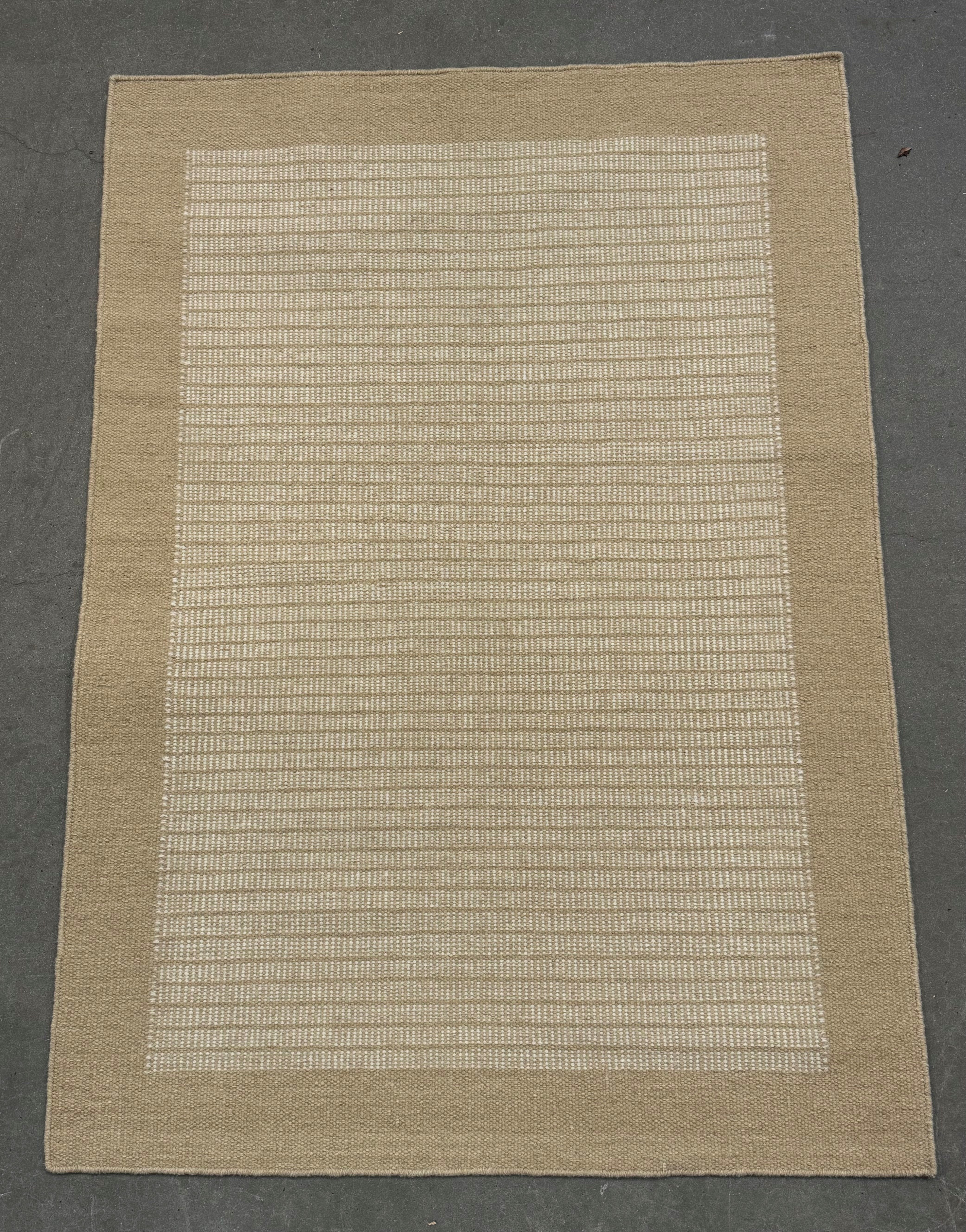 Designet er enkelt og tidløst med en lys, sandfarvet midte prydet af et diskret, geometrisk mønster, indrammet af en varm beige kant. Den rolige farvepalette gør tæppet let at integrere i både moderne, nordiske og klassiske boligindretninger.